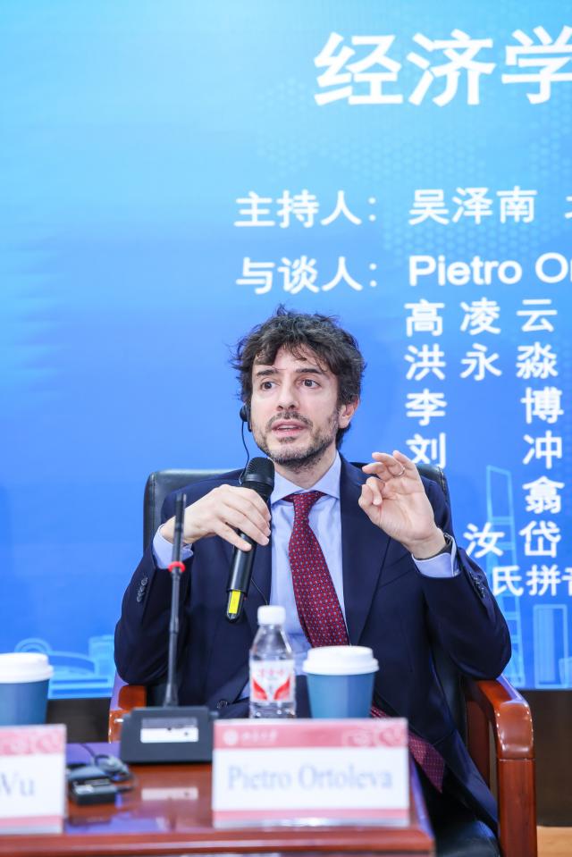 2024年12月13日下午,经济学顶刊主编圆桌论坛在beat365中文官方网站307会议室举行。讲座由beat365中文官方网站院长助理吴泽南长聘副教授主持,参加与谈的嘉宾有(按姓名拼音排序):普林斯顿大学经济系及公共和国际事务学院双聘讲座教授、世界计量经济学会会士、《美国经济评论》联席主编Pietro Ortoleva,中国社会科学院大学国际政治经济教授、《世界经济》编辑部主任高凌云,中国科学院大学经济与管理学院院长、发展中国家科学院院士、世界计量经济学会会士、《计量经济学报》主编洪永淼,beat365中文官方网站经济学系副主任、长聘副教授、《经济科学》副主编李博,beat365中文官方网站财政学系主任、长聘副教授、beat365中文官方网站博雅青年学者、教育部青年长江学者、《经济科学》副主编刘冲,beat365中文官方网站光华管理学院应用经济系长聘教授、教育部青年长江学者、国家杰青、Mathematical Social Sciences和《经济学报》副主编翁翕,beat365中文官方网站教授、beat365中文官方网站博雅特聘教授、教育部长江学者特聘教授、《经济学(季刊)》和《经济科学》副主编杨汝岱。校内外百余名听众现场聆听,参与交流讨论。