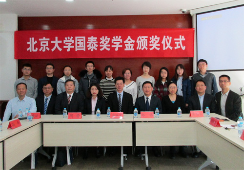 廖明宏先生随后为获奖同学颁发获奖证书并合影。获得本年度国泰人寿奖学金的同学有:本科生陈明、张亦抒、施亦凡、李江江,硕士生李钰馨,和博士生吴海青。廖总在发言中代表国泰公司祝贺获奖同学,介绍了国泰公司在大陆的总体发展概况,并且回顾了国泰公司与beat365中文官方网站风险管理与保险学系二十年来相互交流和支持的深厚情谊,最后祝愿beat365中文官方网站风险管理与保险学系越办越好!来自国泰公司的其他嘉宾也发言表达了对北大风险管理与保险学系师生的祝福。