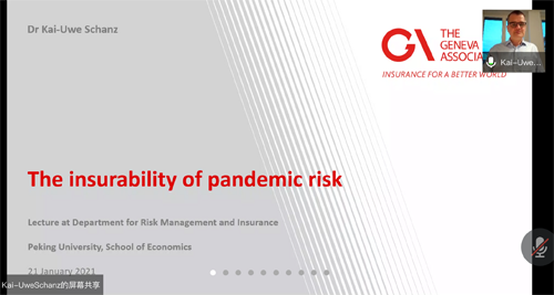 2021年1月21日,第147次北大赛瑟(CCISSR)双周讨论会以网络会议形式举行。本次会议的主讲嘉宾是日内瓦保险协会副秘书长兼研究与前瞻性探讨负责人Kai-Uwe Schanz博士。
