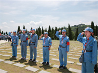 图1:实践团成员列队瞻仰红军长征湘江战役纪念园