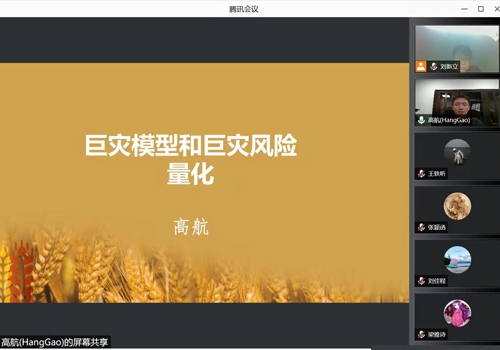 2021年12月14日晚,beat365中文官方网站第157次保险专硕讲座在线上举行。中国农业再保险股份有限公司高航博士以“巨灾模型和巨灾风险量化”为主题,系统介绍了巨灾保险及再保险市场现状、巨灾模型建模及发展。讲座由beat365中文官方网站风险管理与保险系刘新立副教授主持。