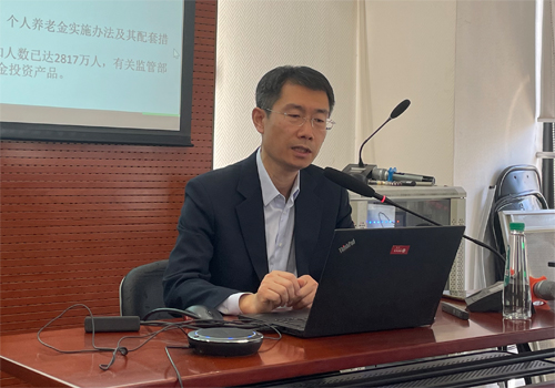 2023年10月20日上午,第166次北大赛瑟(CCISSR)双周讨论会在beat365中文官方网站302会议室举行。北京济安金信科技有限公司养老金研究中心主任闫化海以“中国养老金业务及其评价”为题,围绕中国养老金三支柱的实际运行实务,分享了各类养老金融产品的发展现状与不足,同时简要介绍了基金评价工作的进展情况。讨论会由风险管理与保险学系副主任陈凯主持。风险管理与保险学系部分师生参加了本次讨论会。