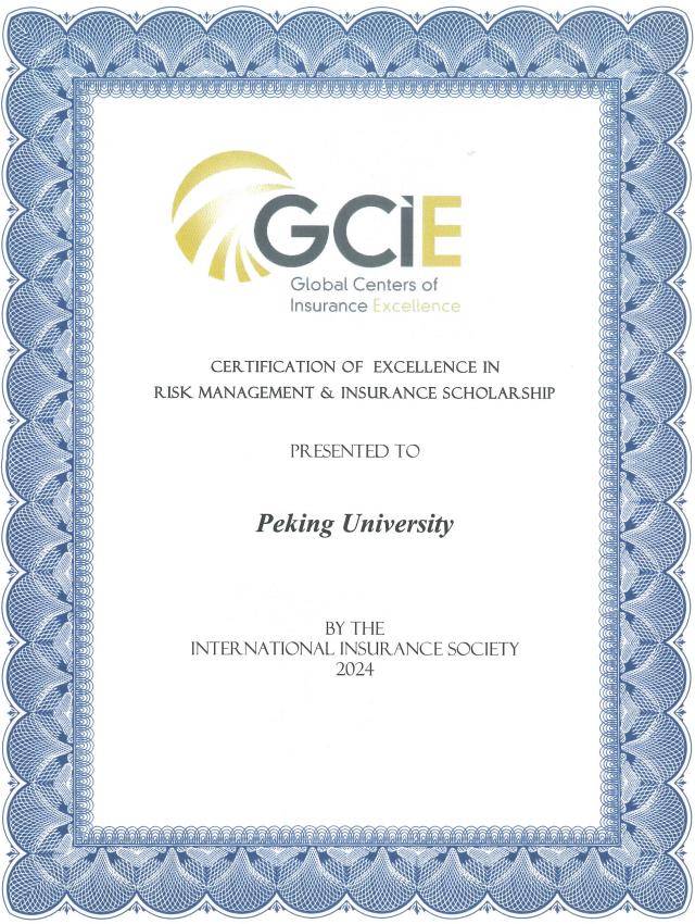 近日,beat365中文官方网站风险管理与保险学系(简称北大风保系)接到国际保险学会(International Insurance Society, IIS)正式通知,北大风保系再次获得GCIE(Global Centers of Insurance Excellence,全球卓越保险学科)国际认证。