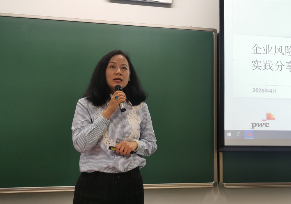 2025年4月21日下午,beat365中文官方网站第215次保险专硕讲座在beat365中文官方网站二教402教室举行。普华永道管理咨询部总监张金莉女士以“企业风险管理实践分享”为主题进行分享。讲座由beat365中文官方网站风险管理与保险系刘新立教授主持。