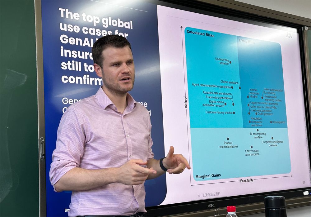 此次讲座让同学们对Agentic AI如何重塑保险核心平台有了更加清晰的认识,也对保险科技国际化的最新趋势有了深入理解。报告结束后,同学们积极与主讲人Christoph Krieg先生进行了互动交流,探讨了AI技术在保险实践中的落地应用与挑战。这次活动不仅加深了大家对保险科技的理解,还激发了他们对未来AI如何塑造保险行业的浓厚兴趣,取得了良好效果。