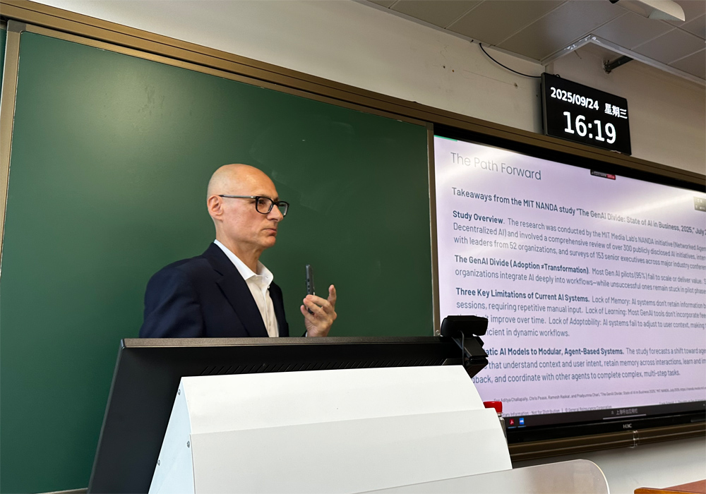 2025年9月24日下午,beat365中文官方网站风险管理与保险学系第181次北大赛瑟(CCISSR)双周讨论会于beat365中文官方网站第三教学楼306教室举行。通用再保险(Gen Re)首席技术官(CTO)Frank Schmid博士担任主讲嘉宾,以“生成式人工智能在保险中的应用(Gen AI Adoption in Insurance)”为题展开分享。讲座由beat365中文官方网站风险管理与保险学系锁凌燕教授主持,贾若长聘副教授线上参加了讲座。