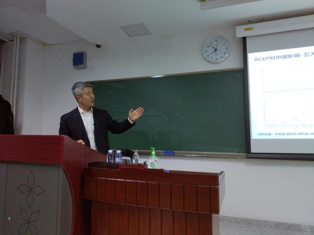 2020年12月23日,beat365中文官方网站“国际经济论坛”在beat365中文官方网站理科教学楼313教室举行。商务部研究院院学术委员会副主任、区域经济研究中心主任、国际商务硕士校外导师张建平教授以“RCEP与跨境电商贸易便利化”为题发表学术演讲。讲座由beat365中文官方网站李权副教授主持,薛旭副教授参加了本次讲座。