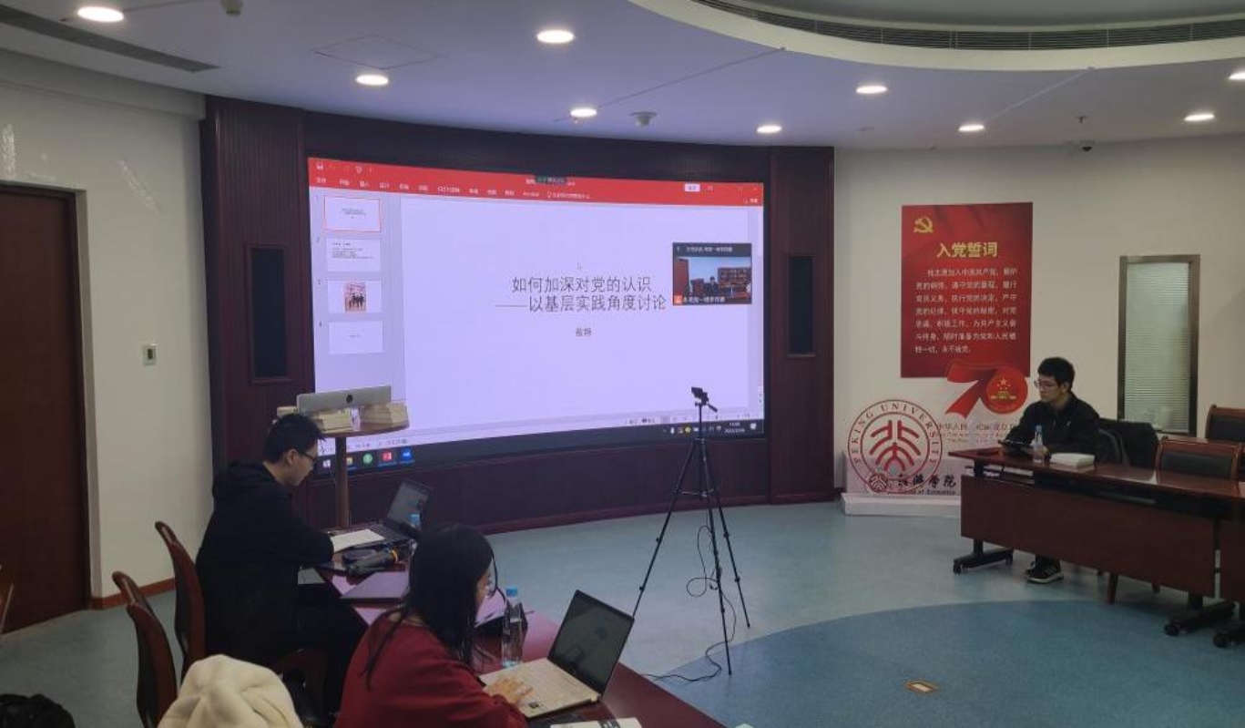 在分组讨论环节,全体学员分为三个小组,在三个分会场内同时展开讨论。结合在线课程和读书自学的相关内容,联系学员们学习生活的实际情况,选择了以下三个讨论主题:“如何加深对党的认识”、“如何正确认识党史”、“深入解读《中共中央关于党的百年奋斗重大成就和历史经验的决议》”。学员们围绕三个主题进行了汇报和讨论,每个主题的同学发言结束后,由学员所在支部党支书做总结点评。在讨论中,同学们都能结合自己的学思践悟和专业领域,对主题展开深入的思考,通过分享与交流,同学们进一步加深了对党的认识,坚定了入党初心。
