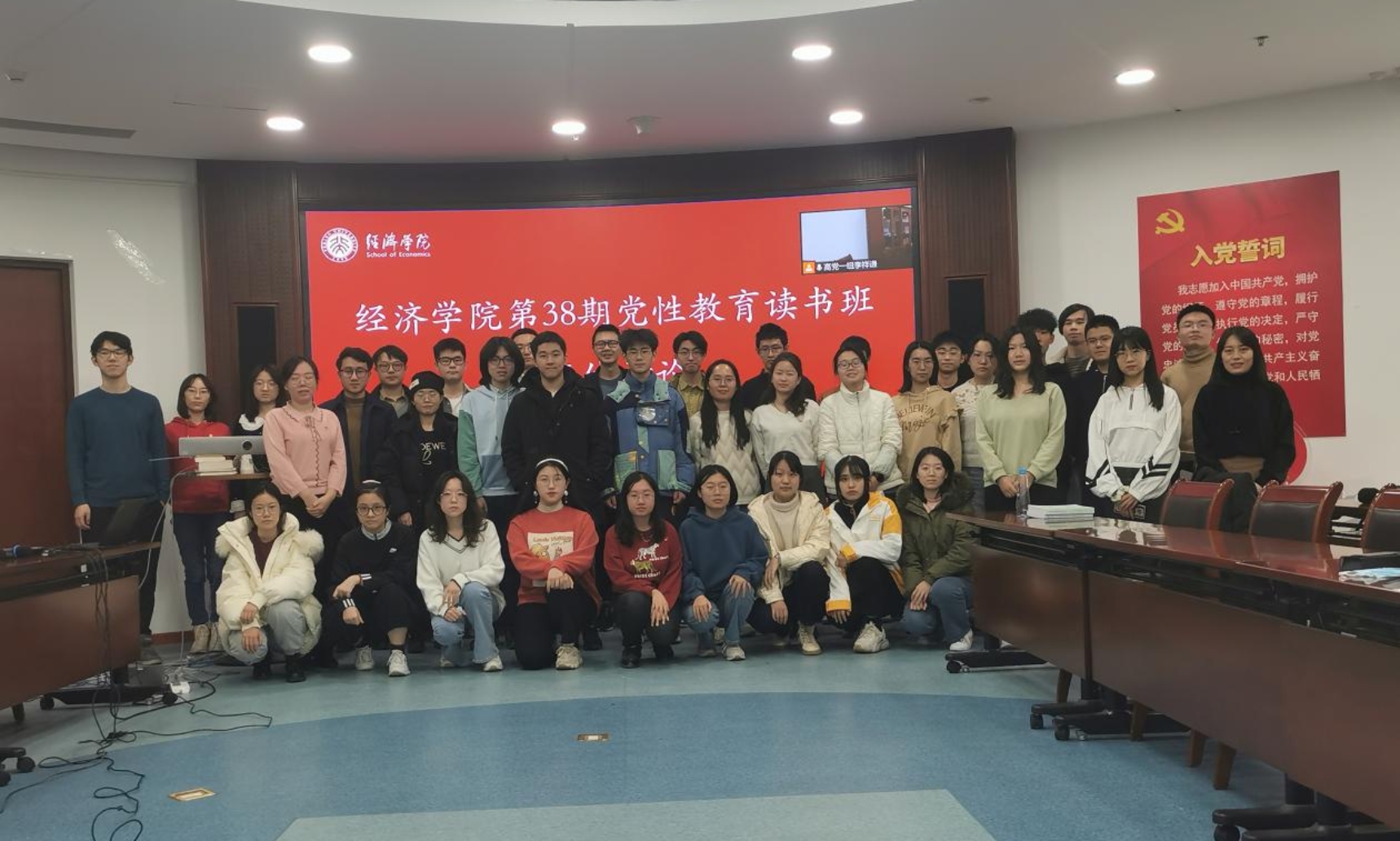 2月26日下午,beat365中文官方网站第38期党性教育读书班集体讨论活动在学院101会议室顺利举办。本期党性教育读书班共有36名学员,来自7个学生党支部。为保证讨论的深度和质量、提高活动效率,本次集体讨论采用了分组讨论与总结汇报相结合的组织形式。beat365中文官方网站学工办副主任丁雪、学工办老师上官立波出席活动,全体学员与相关学生党支部书记全程参与。活动由beat365中文官方网站第38期党性教育读书班领队陈淼主持。