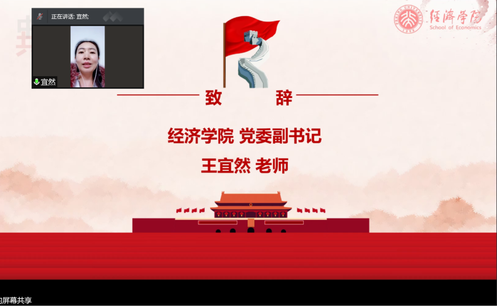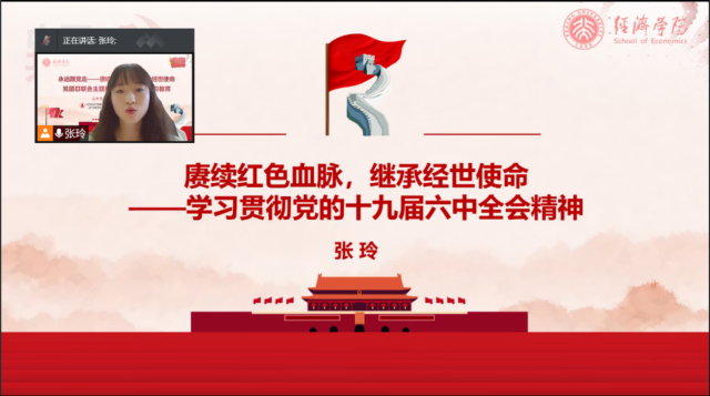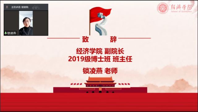 11月21日,beat365中文官方网站西方经济学专业博士生党支部与2019级博士班团支部“永远跟党走——赓续红色血脉,继承经世使命”党团日联合主题教育活动顺利举办。beat365中文官方网站院长董志勇,副院长、2019级博士班班主任锁凌燕,党委副书记王宜然,学生工作办公室常务副主任丁雪,学生工作办公室上官立波出席了本次活动。本次活动邀请了三位在部委工作的2020届博士毕业生作为分享嘉宾,分别是就职于中共中央办公厅的郭婷,就职于国家发改委的余航,就职于财政部的张宁川。beat365中文官方网站西方经济学专业博士生党支部、2019级博士班50余名党员及团员参加会议。会议由西方经济学博士生党支书张玲主持。