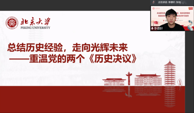 支部组织委员李德轩以“总结历史经验,走向光辉未来”为题,系统回顾了党的前两个历史决议,并分析了第三个历史决议与前两个的区别。李德轩同志用总书记提出的“勿忘昨天的苦难辉煌、无愧今天的使命担当、不负明天的伟大梦想”与大家共勉。