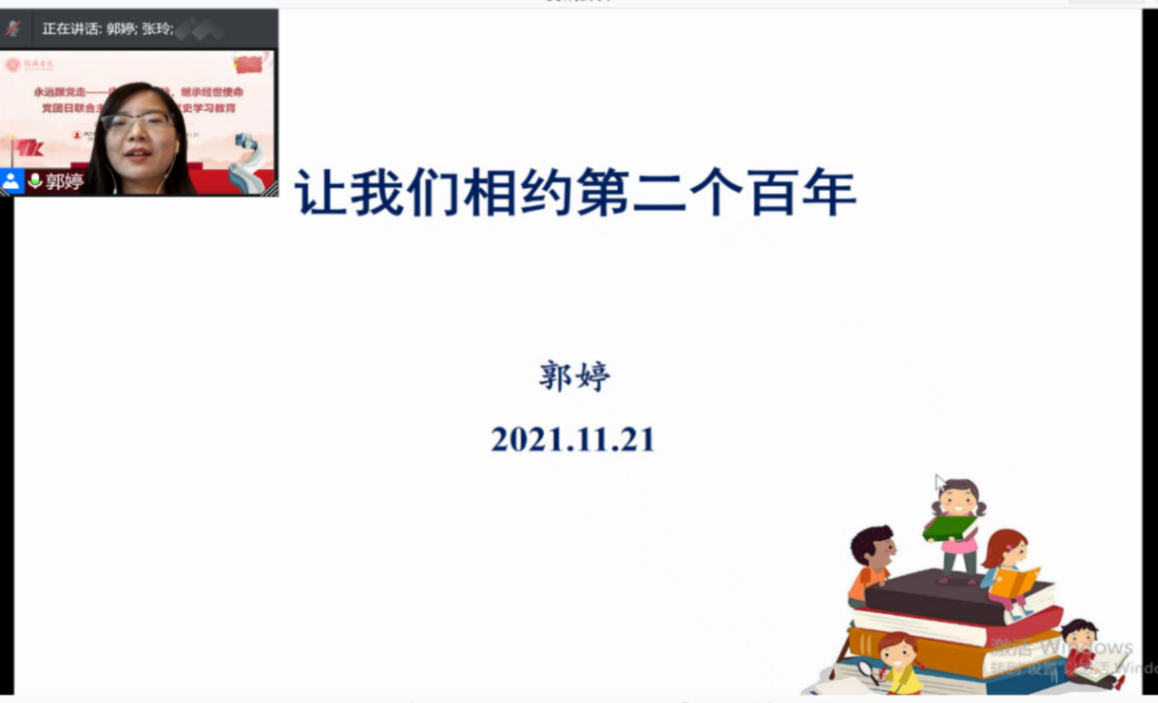 郭婷以“让我们相约第二个百年”为主题进行分享。她表示,党的伟大不在于不犯错误,而在于积极开展批评和自我批评,敢于直面问题,勇于自我革命,从而永葆青春,保持先进性与纯洁性。作为新时代的青年学子,我们将亲眼见证并全程参与第二个百年征程,这既是时代赋予我们的历史使命,也是我们的光荣。