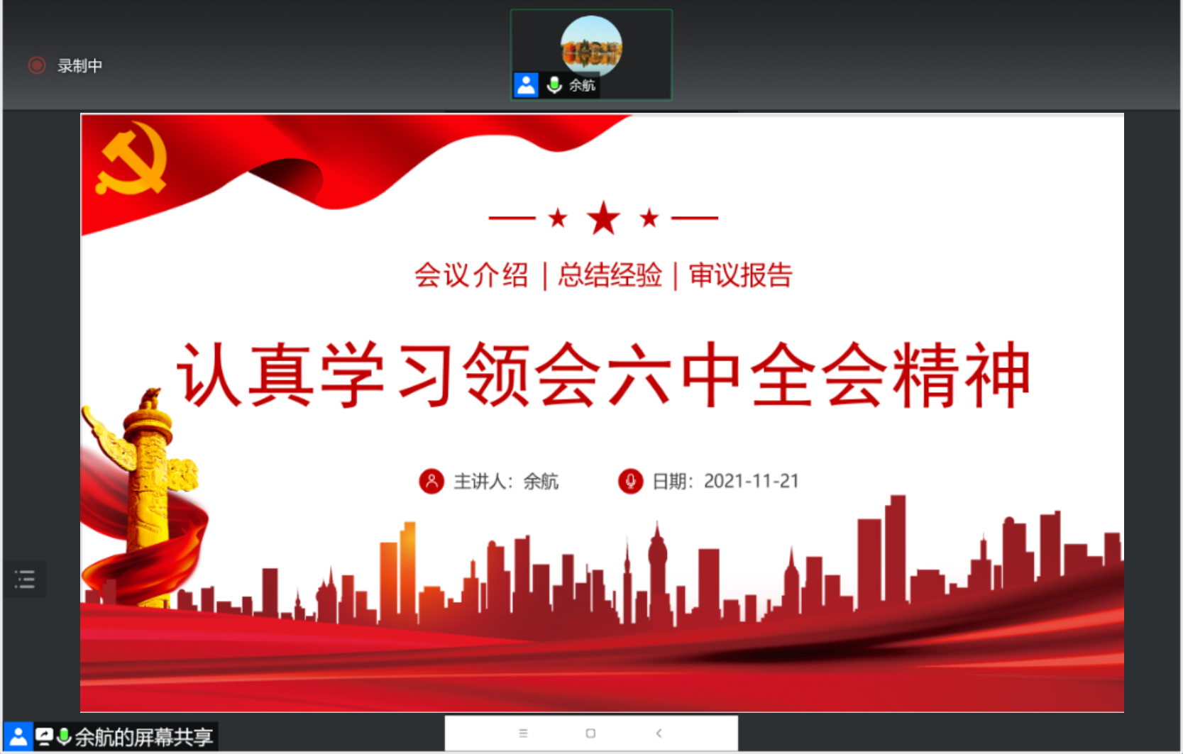 余航同志进行分享