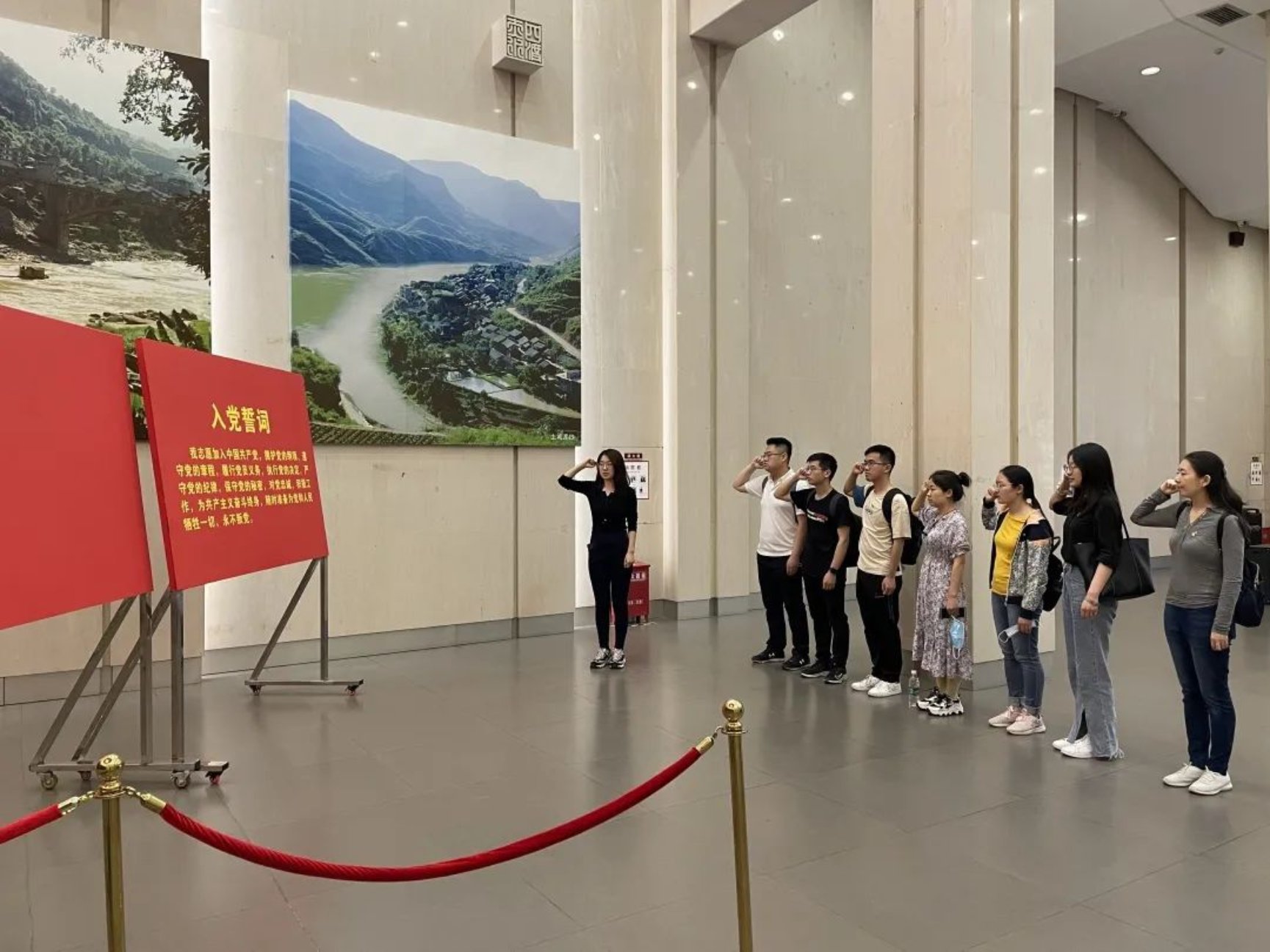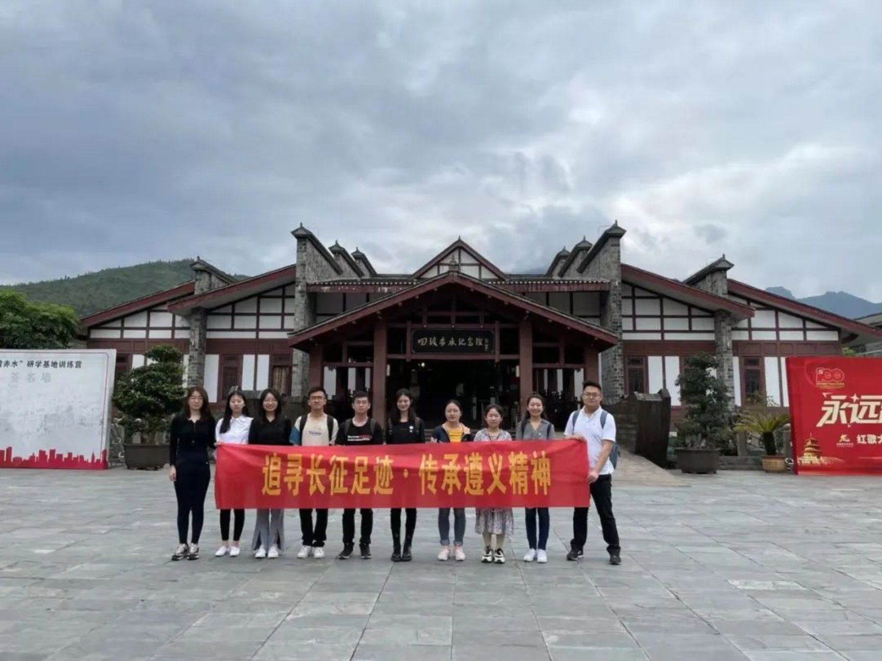5月7日下午,师生来到位于习水县土城镇的四渡赤水纪念馆。四渡赤水之战是红军在战略转移中从被动走向主动,从失败走向胜利的转折点。从1935年1月19日离开遵义开始,到5月9日胜利渡过金沙江为止,红军在3个月内共歼灭和击溃敌人4个师、2个旅另10个团,俘敌3600余人。脚下的这片土地由烈士们的鲜血染红,师生在纪念馆中被红军四渡赤水的辉煌战绩深深震撼,在庄严的党旗下重温入党誓词,强烈感受到今日幸福生活的来之不易,表示将会继承先烈遗志,发扬伟大精神,时刻勉励自己迎难而上、勇往直前。