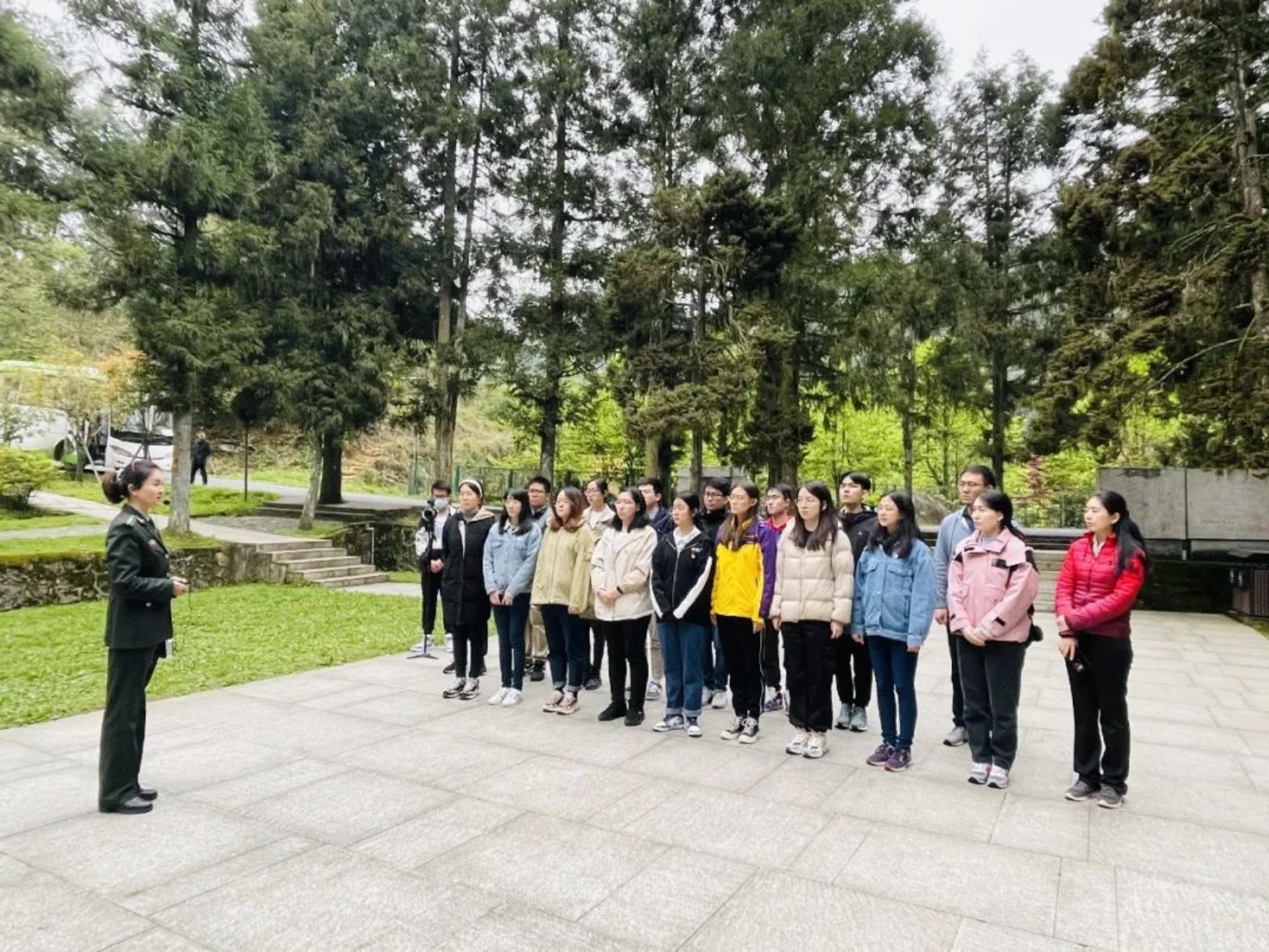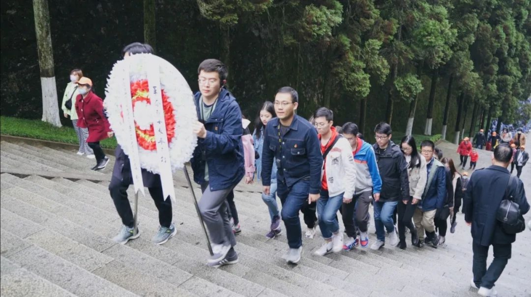 井冈山革命烈士陵园,天幕低垂、松柏苍苍。在老师的带领下,全体同学缓步拾阶而上,向革命烈士纪念碑敬献花圈,怀着无比崇敬的心情向革命先烈三鞠躬并默哀,表达深切的缅怀和哀思。随后,师生面向鲜红的党旗集体肃立,举起右手,重温入党誓词。“我志愿加入中国共产党,拥护党的纲领,遵守党的章程……”响亮的誓词回荡在青松翠柏之间。最深的悼念是铭记,最好的纪念是传承,最高的致敬是奋进。师生纷纷表示,要传承伟大的井冈山精神,谨记入党誓词,不忘入党初心,时刻以党章党纪自律自检,永远以理想信念自励自勉。