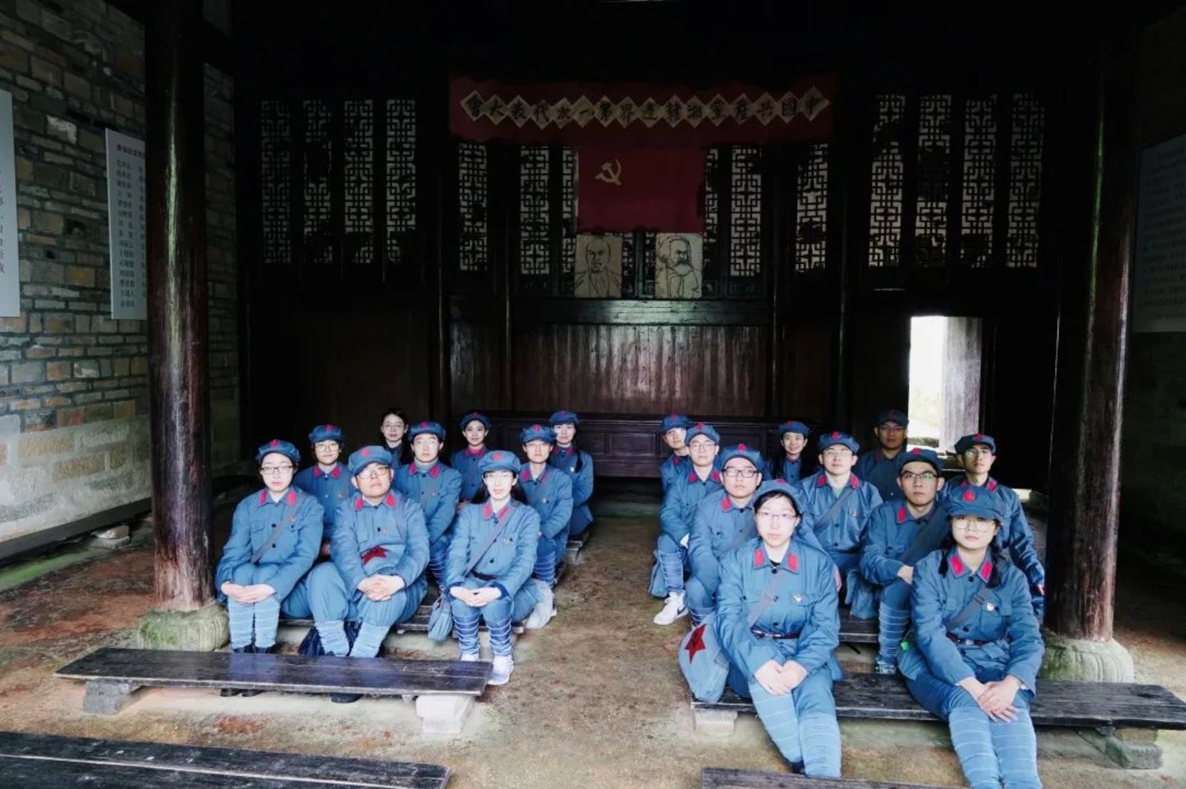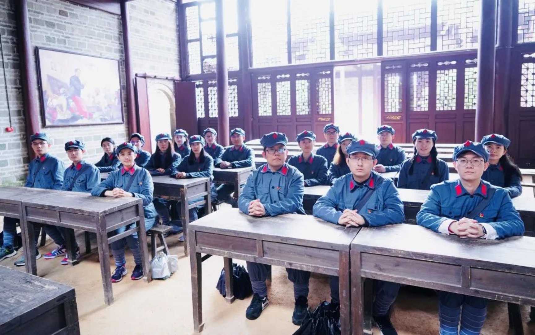 师生在中共湘赣边界“一大”旧址