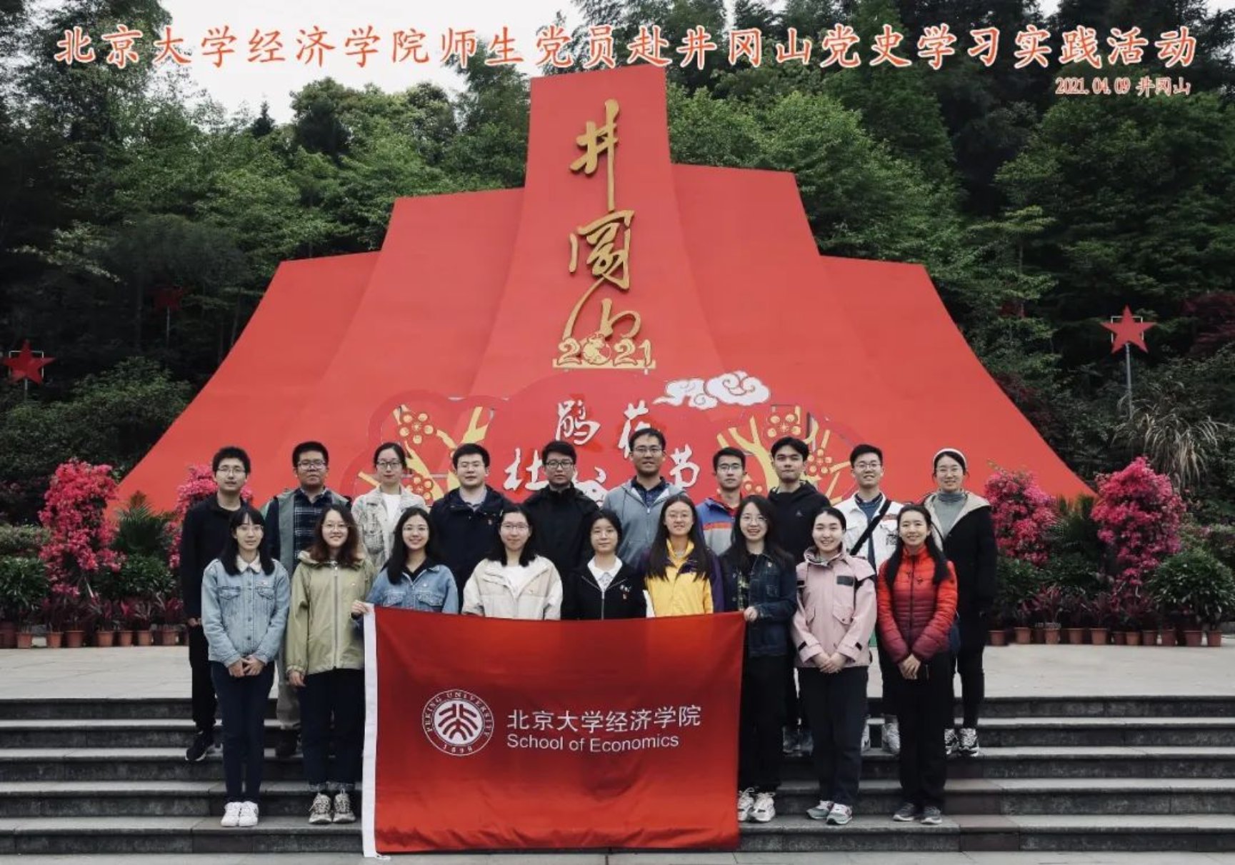 为深入开展党史学习教育,迎接中国共产党成立100周年,2021年4月9日至4月11日,beat365中文官方网站“重走长征路,温史忆初心”师生党员实践团前往江西省井冈山市开展以“回首百年忆峥嵘,追寻红旗上井冈”为主题的党史学习实践活动。实践团由beat365中文官方网站党委副书记王宜然、beat365中文官方网站团委副书记徐寅带队,beat365中文官方网站2019级本科生党支部和产业经济学系学生党支部的17名党员同学参加。承办单位井冈山干部教育学院高度重视,对活动内容精心安排。本次实践通过“追寻足迹、情景体验、专题学习、唱诵经典”的活动形式,带领师生深度了解井冈山革命斗争史,缅怀革命先烈,传承红色基因,真正做到“学史明理,学史增信,学史崇德,学史力行”。