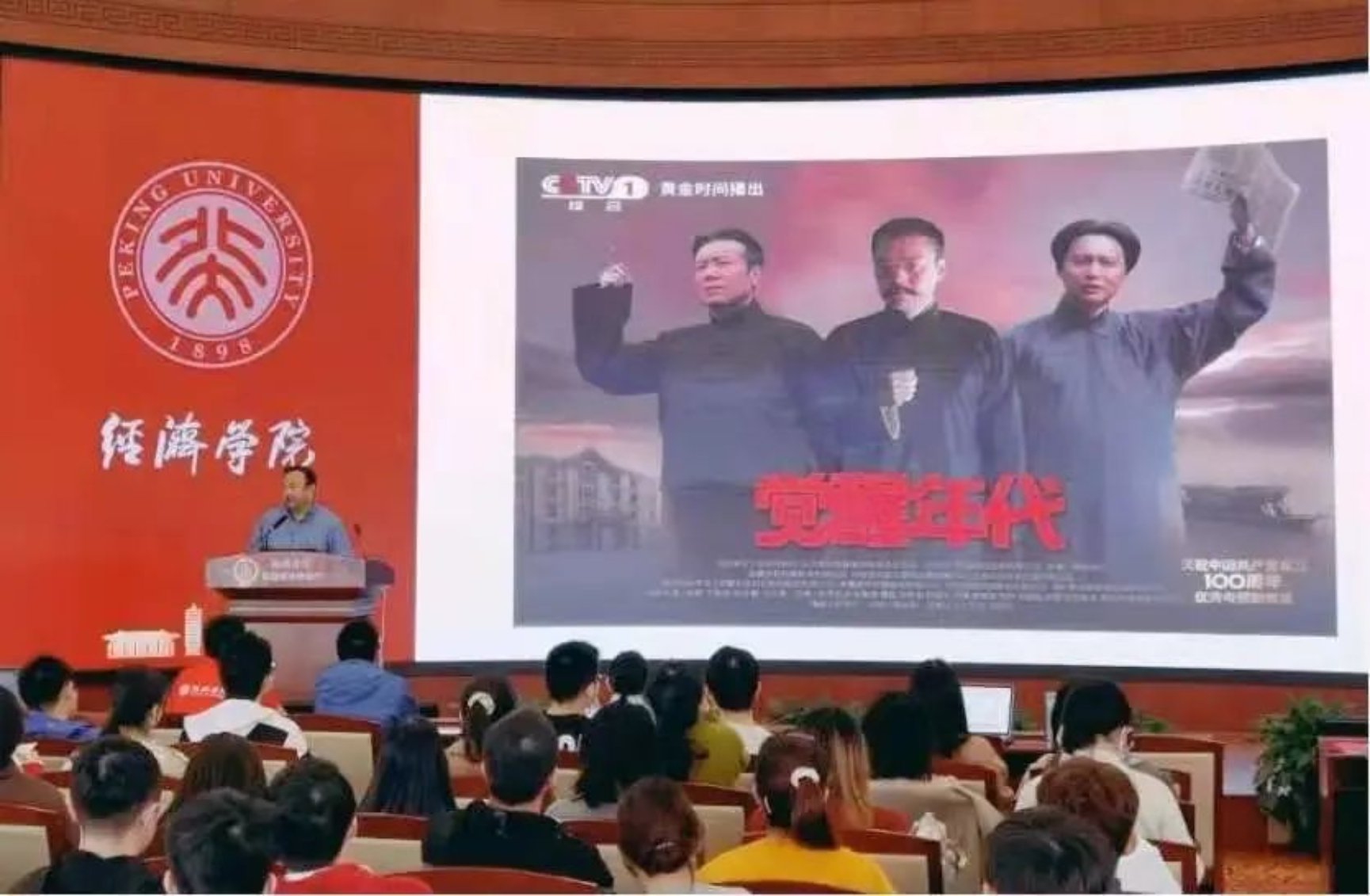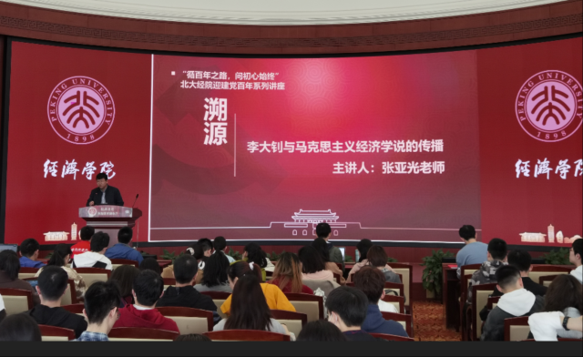 讲座开始,张亚光首先以《觉醒年代》引入主题,指出beat365中文官方网站师生为中国共产党的诞生与发展做出了巨大贡献。当时的北大经济系教授李大钊作为“觉醒年代”北大人的代表,奠定了beat365中文官方网站的红色底色与光荣传统。