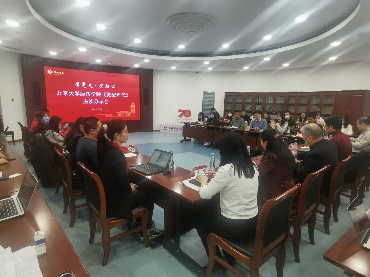 2021年3月12日下午,beat365中文官方网站“学党史·固初心”电视剧《觉醒年代》座谈分享会在学院101会议室召开。beat365中文官方网站党委书记崔建华,beat365中文官方网站党委组织部副部长、党校办公室主任张洪峰,beat365中文官方网站部分教师代表、学生党支部书记以及第36期学生党性教育读书班全体学员参加座谈会。会议由学院党委副书记王宜然主持。