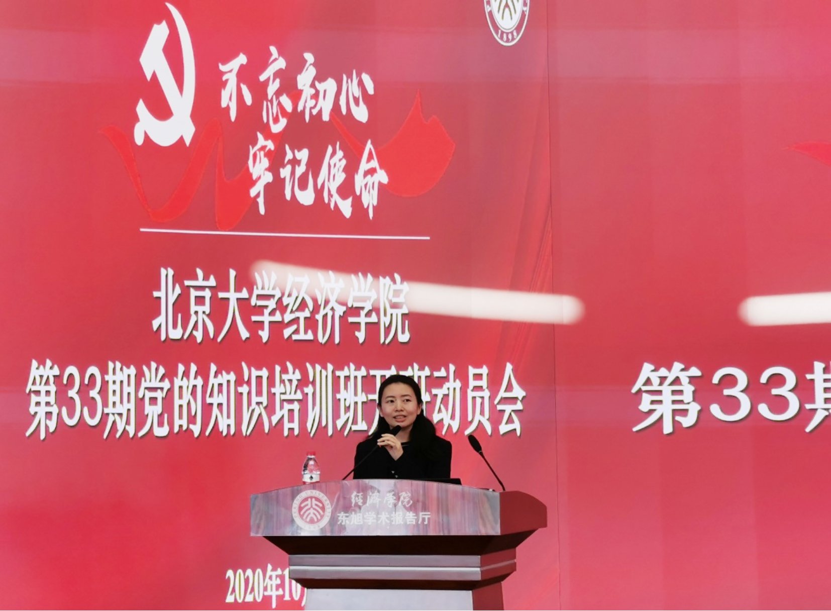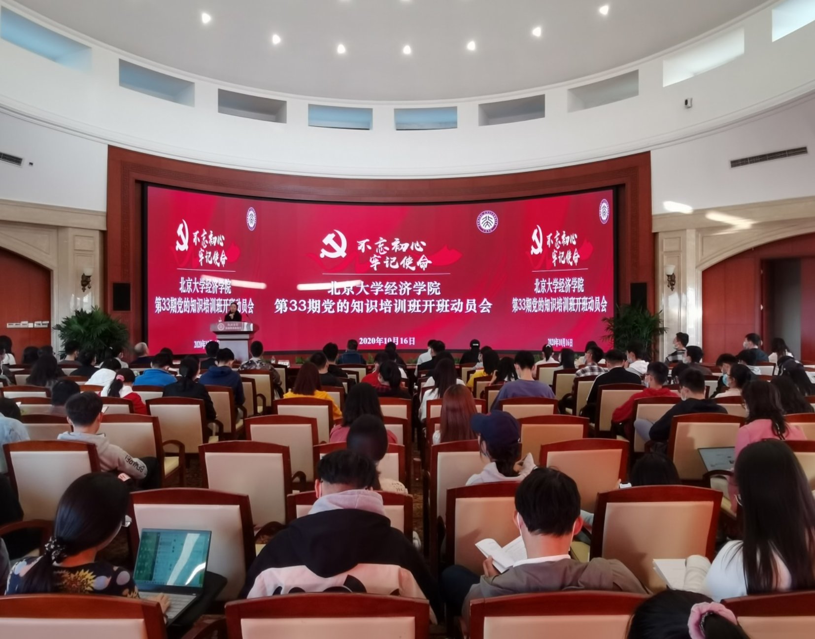 2020年10月16日下午,beat365中文官方网站2020年第33期党的知识培训班开班动员会在学院东旭学术报告厅举办。院党委书记崔建华、副书记王宜然、院学工办党建负责人刘雪莹等出席会议,学院第33期初级党课全体学员及学生党支部书记参会。会议由2020级博士生施瀚主持。