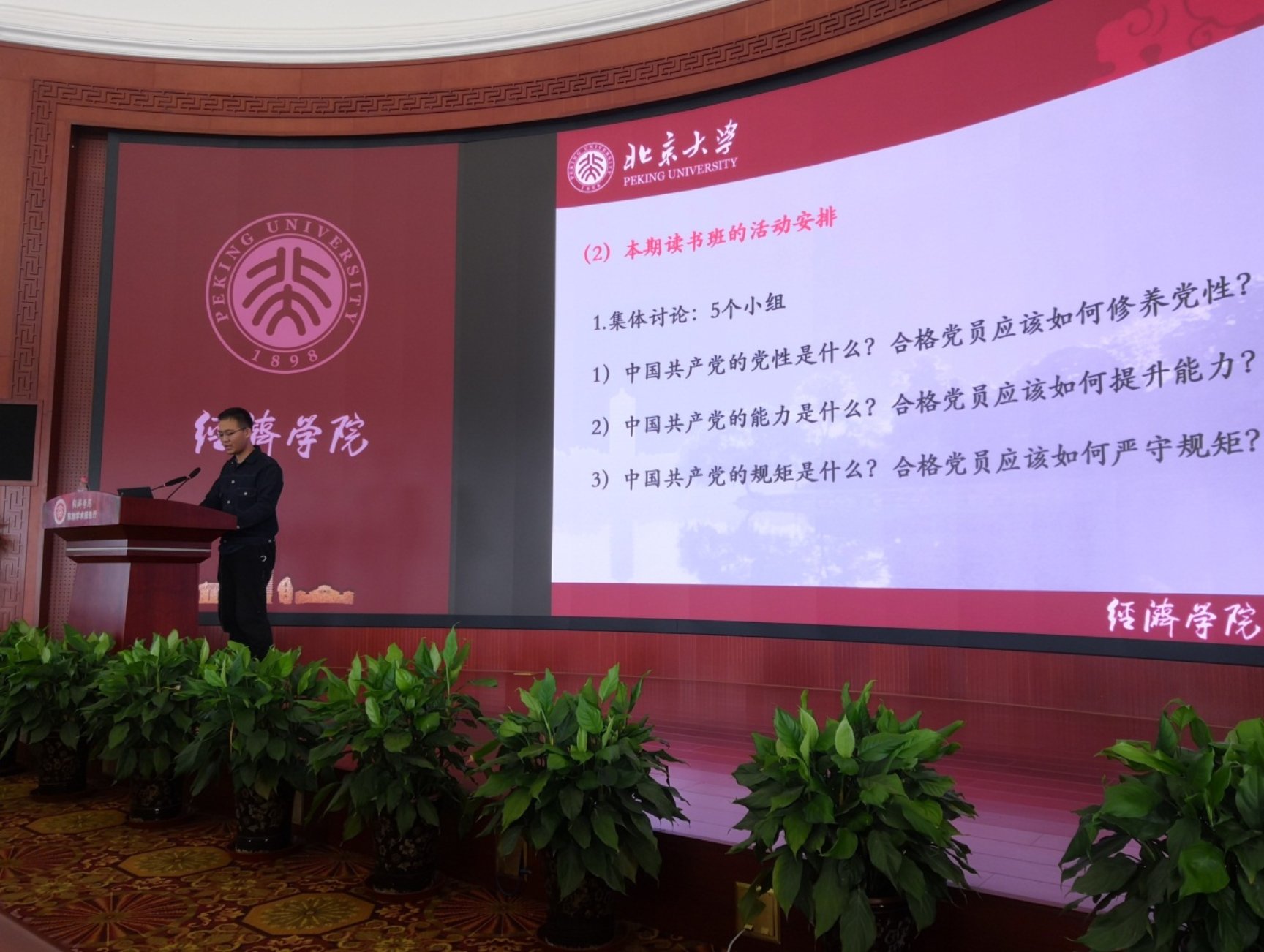 接下来,吴瀚然介绍了本期党性教育读书班的基本情况。本期读书班呈现时间安排紧凑和培训人数众多等特点,来自16个学生党支部的117名学员将在9月下旬集中完成线上培训、集体讨论、党性教育实践活动等学习内容。本期读书班采取了分组学习的方式,全体学员分为5个小组,单独或联合地开展学习活动,小组之间相互借鉴与交流,形成了良好的学习氛围。在集体讨论方面,截至动员会当日,已有两个小组紧密围绕合格党员应如何修养党性、如何提升能力、如何严守规矩等主题完成了讨论。在党性教育实践活动方面,本期读书班在严格遵守防疫规定的前提下,精心设计了包括党史党识知识竞赛、校史馆参访、主旋律诗歌朗诵会等系列实践活动,确保教育实践活动兼具严肃性、学习性和参与性。