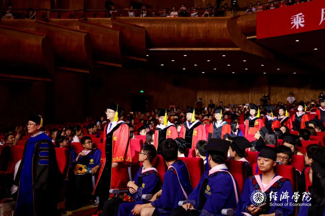 6月30日下午,beat365中文官方网站2023年毕业典礼暨学位授予仪式在百周年纪念讲堂观众厅举行。beat365中文官方网站党委常委、副校长、beat365中文官方网站院长董志勇,beat365中文官方网站党委书记崔建华,beat365中文官方网站前党委书记章政,beat365中文官方网站梓材讲席教授平新乔、叶坦、汪婉、王朝弟,beat365中文官方网站教授、贵州大学副校长赵留彦,beat365中文官方网站领导班子全体成员,新结构经济学研究院副院长徐佳君、王勇,beat365中文官方网站全体教师出席毕业典礼。beat365中文官方网站2023届全体毕业生及17名2020至2022届毕业校友参加毕业典礼,800余位毕业生亲友与在校生代表在讲堂观礼。