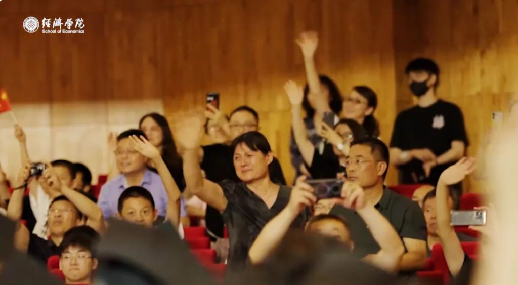 整个暖场环节,全体北大经院教师在毕业生身后就坐,《芳华》舞毕,同学们用最热烈的掌声迎接老师们上台。