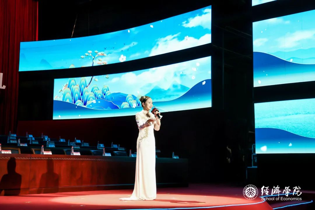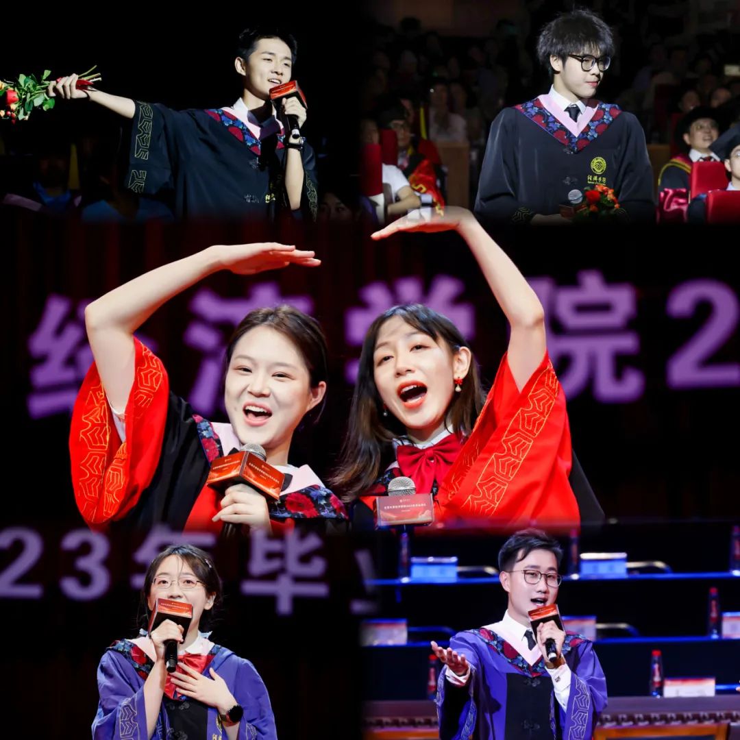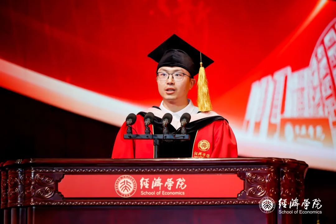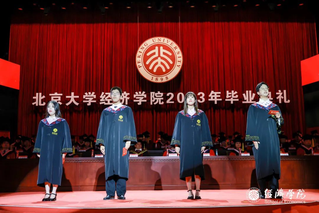 2023届本科毕业生代表金楚楚、董晨晖、梁铠彤、索朗多杰,以《出发,是为了更好地归来》为题,回忆了经院学子在燕园丰富多彩又充满无限可能的生活。