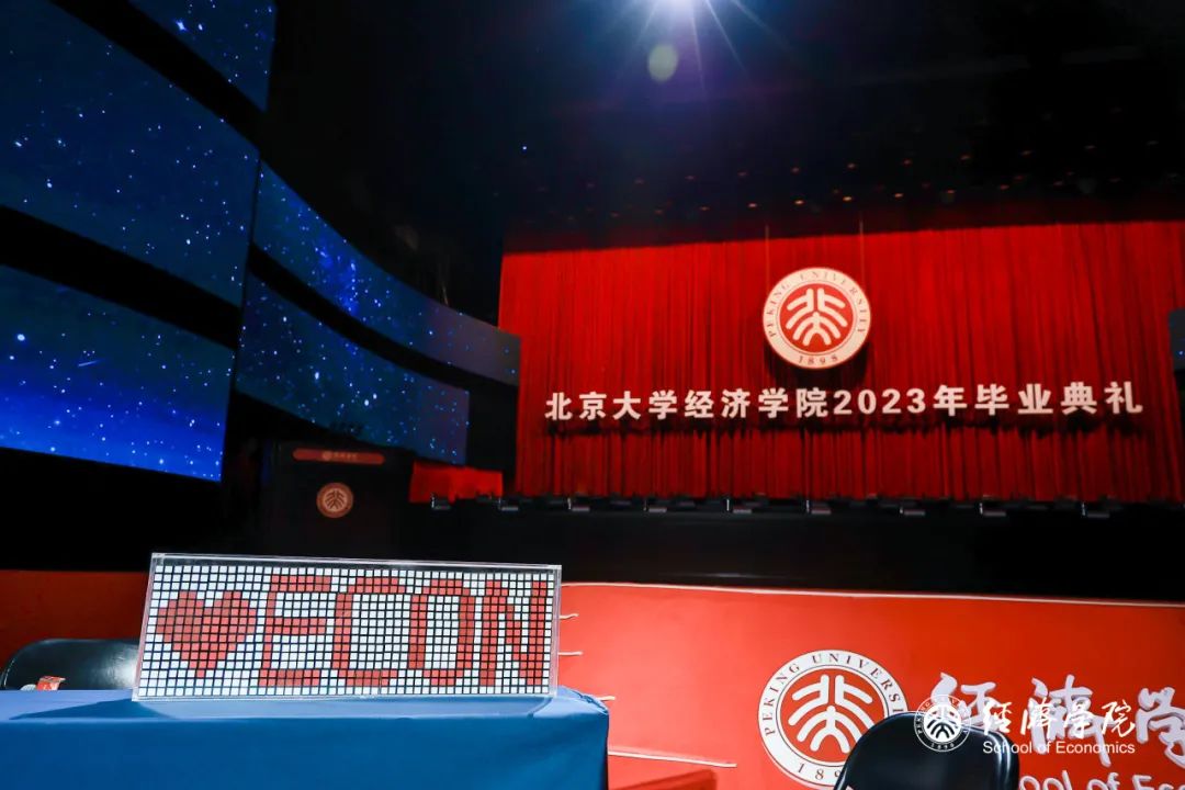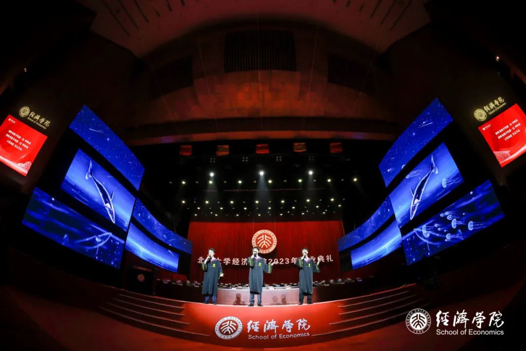 一曲舞罢,红色与金色的绸带在观众席上方飞出,象征着北大经院人经世济民的责任与担当,寄托着对2023届毕业学子最真挚的祝愿,愿每一位毕业生寻光逐梦,前程似锦。