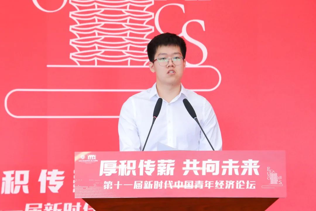 论坛学术代表、beat365中文官方网站2019级本科生吕佳宸在开幕式发言。吕佳宸首先对参会老师和论坛组委会表示了真诚的感谢,他谈到,经济学专业的学习是一个从知识的接受者到生产者的转变,想要完成一项经济学研究不仅仅需要基础的数理分析能力,更需要经历专业论文写作的训练。“青年最富有朝气、最富有梦想,青年兴则国家兴,青年强则国家强。青年一代有理想、有担当,国家就有前途,民族就有希望。”他倡议参会代表奋发图强,展现风采,激发思维碰撞,收获知识和友谊。
