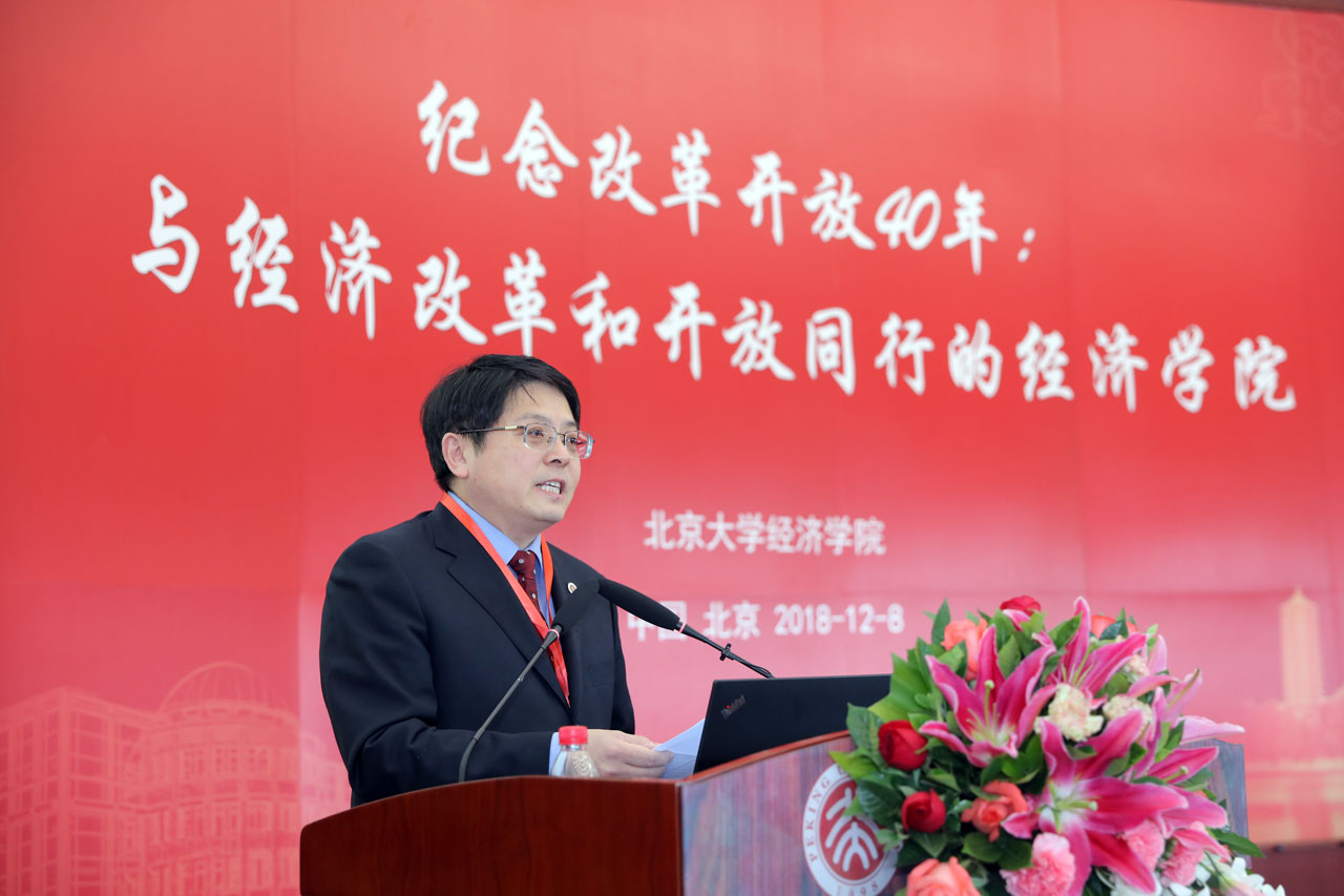 董志勇代表北大beat365中文官方网站致欢迎辞。他指出,百余年来,beat365中文官方网站始终坚守经世济民的初心,紧扣时代前行的脉搏。它不仅是中国最早的马克思主义经济学传播基地和西方经济学教育阵地,更是中国改革开放经济理论的重要策源地和学术前沿。应该说,几乎每一次关系中国社会政治和经济重大走向的学术、政策讨论,都饱含北大经院人的智慧贡献。40年来,beat365中文官方网站始终与改革开放的伟大征程共同前行,共同见证和收获改革开放的累累硕果。与经济改革和开放的伟大历程同步伐、共奋进,是时代赋予beat365中文官方网站的标签,这是一枚耀眼的勋章,更是一份沉淀淀的使命和责任。站在改革开放40年的历史节点上,北大经济学人有修齐治平的笃定信念,更坚定了“研以致用,为人民做学问”的理想,力争把beat365中文官方网站建设成为未来经济和改革领域的人才培养基地和高端智库,为国家经济学科的理论繁荣和实践创新再续华章。