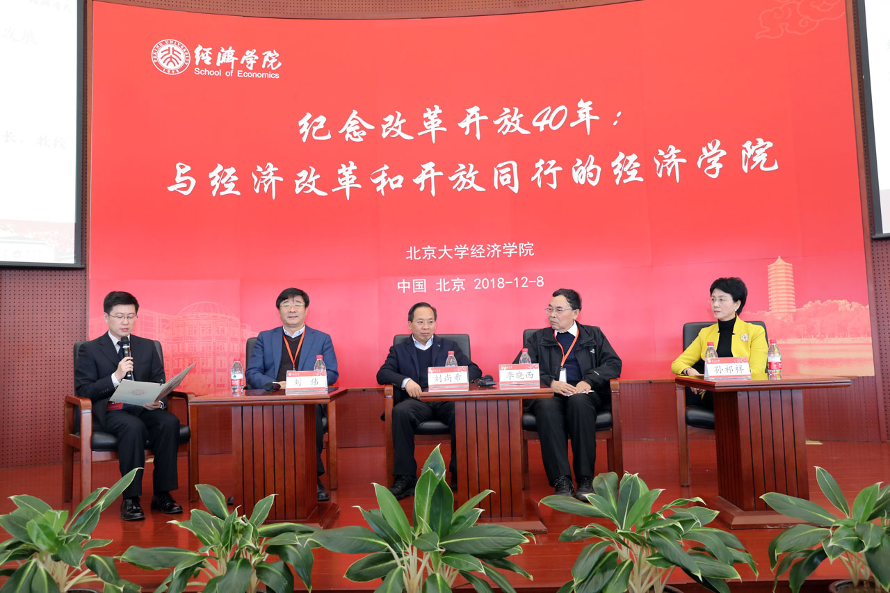 “中国特色社会主义经济学的理论构建发展”圆桌论坛由北大beat365中文官方网站副院长秦雪征主持。刘伟、刘尚希、李晓西、孙祁祥等嘉宾围绕主题展开了深入交流。