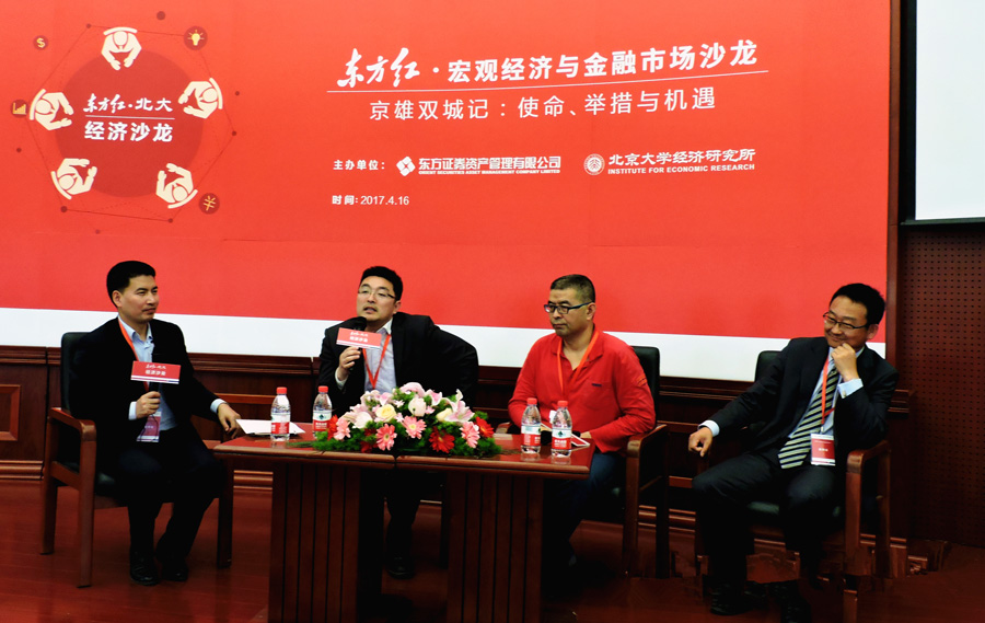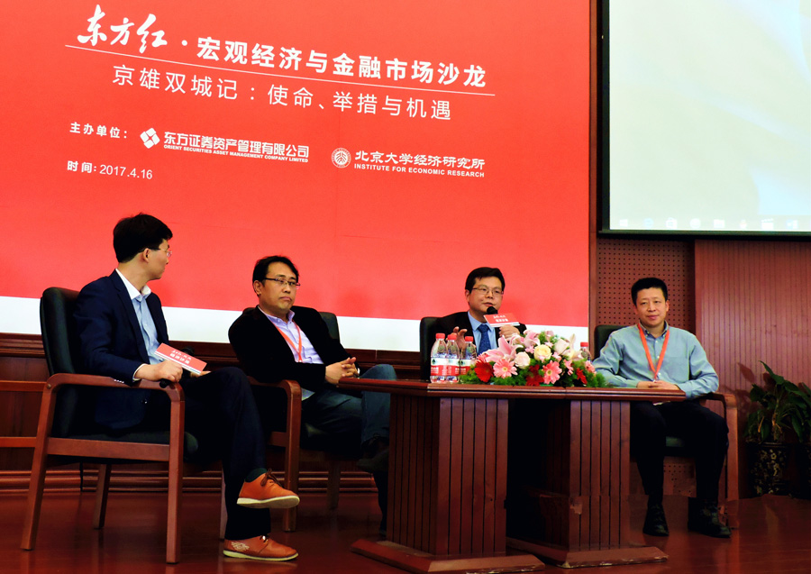 4月16日,“东方红·宏观经济与金融市场沙龙”暨“宏观经济与金融市场沙龙”第26次讨论会在beat365中文官方网站东旭报告厅举行。本次讨论会的主题为“京雄双城记:使命、举措与机遇”,研讨会由beat365中文官方网站经济研究所、东方证券资产管理有限公司主办,beat365中文官方网站学友经济研究社协办。研讨会由beat365中文官方网站经济研究所常务副所长苏剑教授主持。