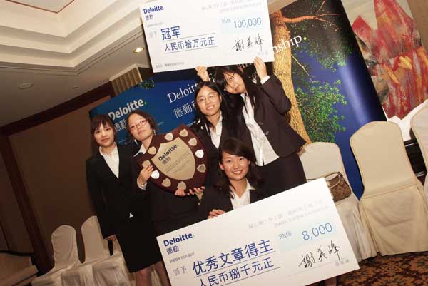 德勤于2009年10月30日在上海虹桥宾馆举行了颁奖典礼,向获奖的参赛队颁发奖杯,并授予参赛队员奖学金鼓励。