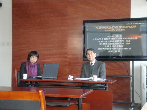 2009年11月2日上午,“财政改革与日本经济复苏”讲座在经院新楼302会议室举行,嘉宾本间正明教授就公共财政改革和日本与中国的财政状况对比等议题进行了讲解。讲座由林双林老师主持,本间先生的夫人和学生,以及财政学系的部分师生等出席了本次讲座。