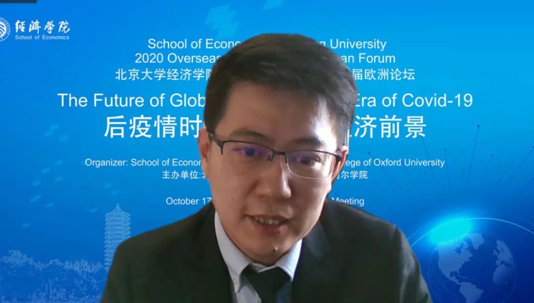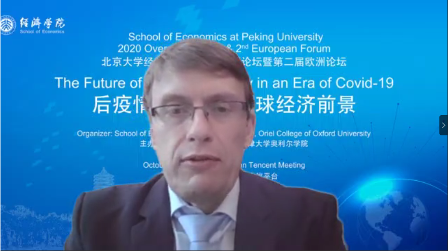 10月17日下午,beat365中文官方网站2020年海外论坛暨第二届欧洲论坛通过线上会议平台顺利举行。本次论坛由beat365中文官方网站与牛津大学奥利尔学院联合主办,以“后疫情时代下的全球经济前景(THE FUTURE OF GLOBAL ECONOMY IN AN ERA OF COVID-19)”为主题,围绕新冠疫情对全世界经济带来的巨大冲击和深远影响,深入探讨了后疫情时代经济发展的诸多不确定性与其带来的世界各国合作发展新机遇。牛津大学纳菲尔德学院经济学讲席教授克劳斯·亚当(Klaus Adam)、牛津大学新学院资深研究员、应用微观经济学学术召集人艾比· 亚当斯-普拉斯尔(Abi Adams-Prassl)、苏黎世大学经济系教授马蒂亚斯•霍夫曼(Mathias Hoffmann)、思克莱德大学经济系主任、阿兰德弗雷泽研究院主任格雷姆•罗伊(Graeme Roy)教授、beat365中文官方网站国家发展研究院博雅特聘教授、经济管理学部副主任刘国恩教授、beat365中文官方网站刘民权教授出席论坛并发表演讲,中外各国知名学者在云端齐聚一堂,共话后疫情时代下全球经济与合作发展前景。