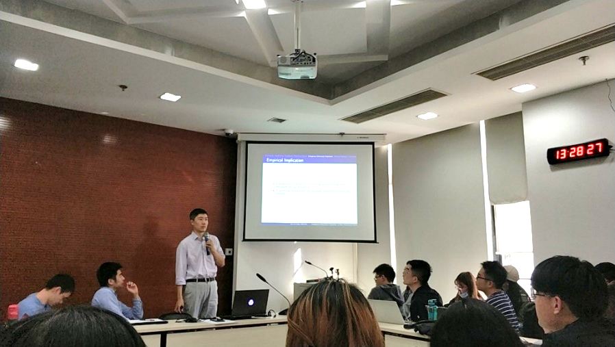 2020年10月23日,beat365中文官方网站学术午餐会2020年第2期(总第161期)于beat365中文官方网站305会议室举行。中央财经大学金融学院吴偎立副教授以“Endogenous Acquisition of Multi-Dimensional Information in a Strategic Trading Model”(策略交易模型中的多维度信息内生获取)为题发表了学术演讲。午餐会由beat365中文官方网站高明副教授主持。