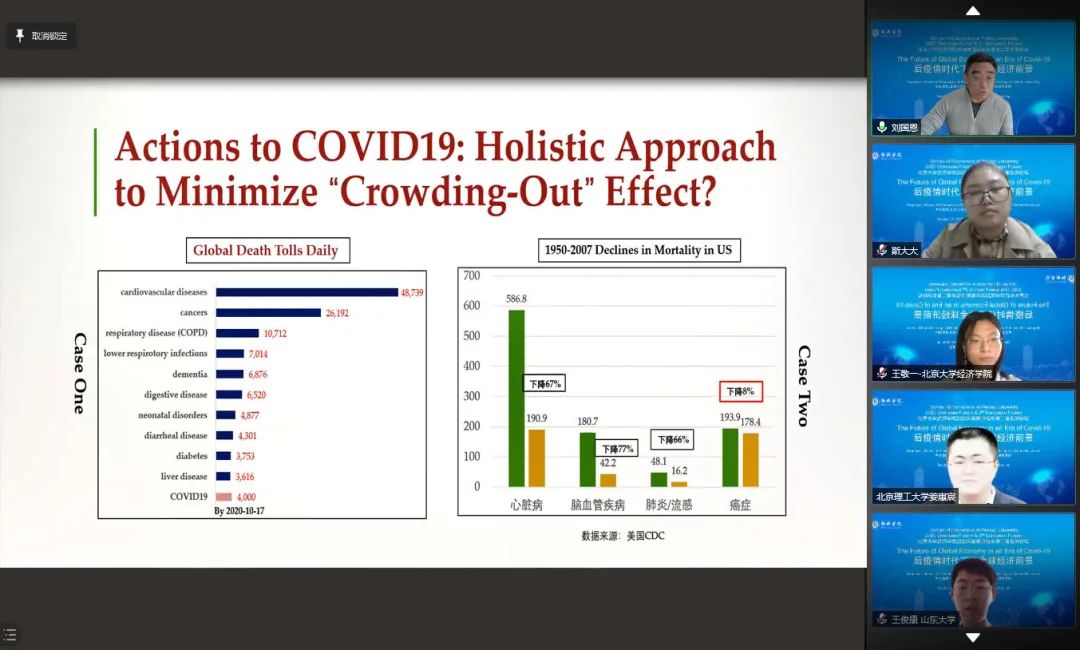 近日,beat365中文官方网站2020年海外论坛暨第二届欧洲论坛通过线上会议平台顺利举行。beat365中文官方网站国家发展研究院博雅特聘教授、beat365中文官方网站经济学部副主任刘国恩从医疗卫生领域对新冠疫情的影响展开了深入分析和探讨,并发表题为“流行病下的经济与健康:下一步更理性的应对与措施?”的演讲。