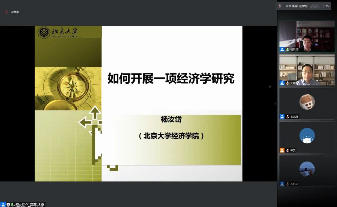 此外,杨汝岱就经济学研究及论文写作的相关问题作了详细阐述。他指出,研究中所需解决的两个核心问题是有限资源的有效配置和因果关系。经济学研究的作用不仅体现于对历史的阐释能力,还在于关注对政策事件的评估,以及对未来做出预判,最终推动相应政策的制定,实现社会福利的提升。