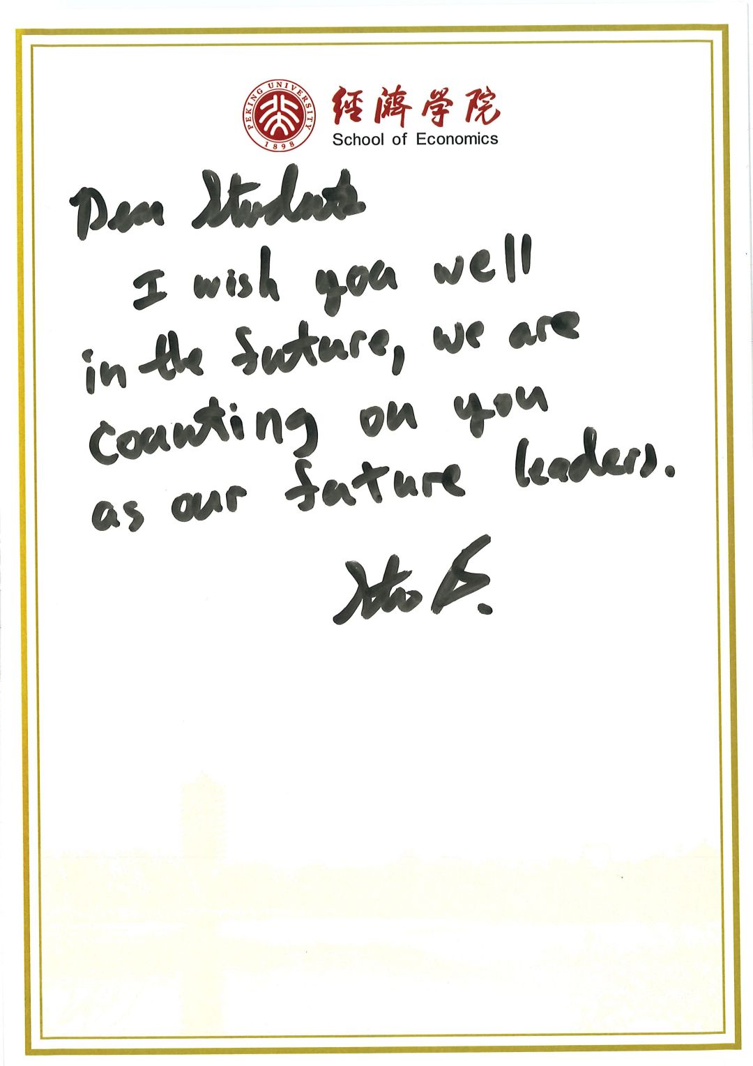 巴奈特博士为经院同学题词