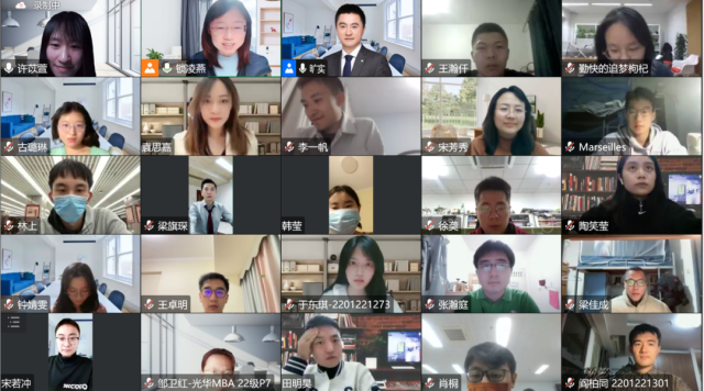 演讲环节结束后,旷实先生与同学们进行了交流互动。在听完旷实先生的精彩分享后,同学们踊跃地提出了有关未来行业发展趋势、具体公司发展逻辑等方面的问题,旷实先生一一进行了解答。锁凌燕教授对旷实先生的精彩演讲和同学们的热情互动表达了肯定和感谢。课程最后,老师同学们与旷实先生在线上合影留念。