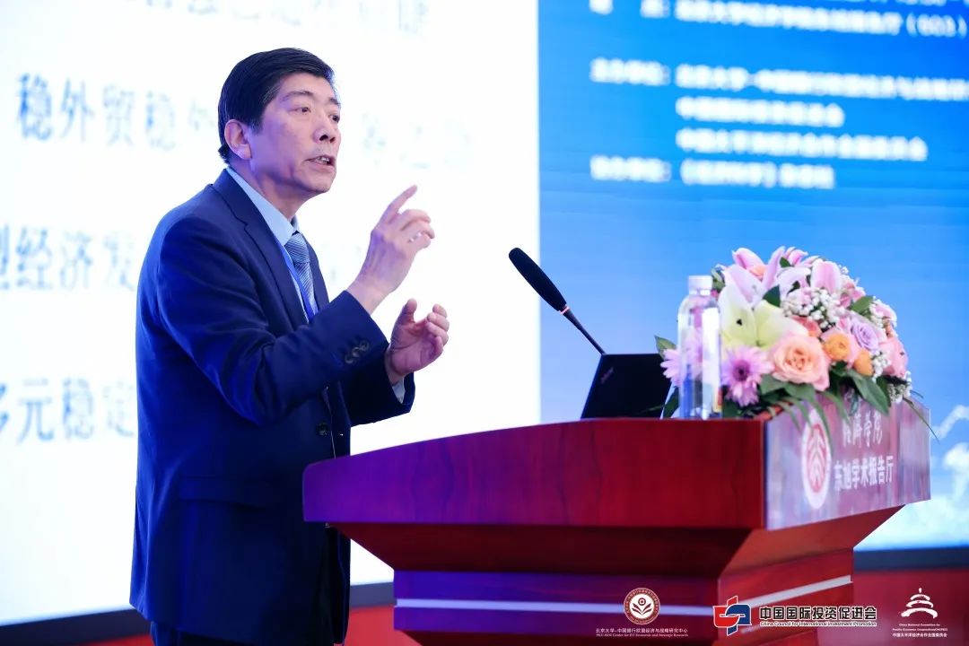 霍建国作了题为“把握国际竞争格局变化,以高水平开放赢得竞争主动”的主旨演讲。他指出,当前中国的外部环境面临着五大挑战:冷战思维复活、经济发展不平衡加剧、资本流动频繁、逆全球化趋势上升、多边贸易体制冲击。面对这五大挑战,中国应当对标CPTPP高标准规则,推进高水平对外开放,以开放促进改革。未来,外向型经济仍面临巨大挑战,高科技领域的封锁限制将加剧,产业链供应链矛盾也将日趋严重。中国应当认识到良好的营商环境是稳定外向型经济发展的基本保障,并改善和修复国际经贸关系,建立多元稳定的外部环境。