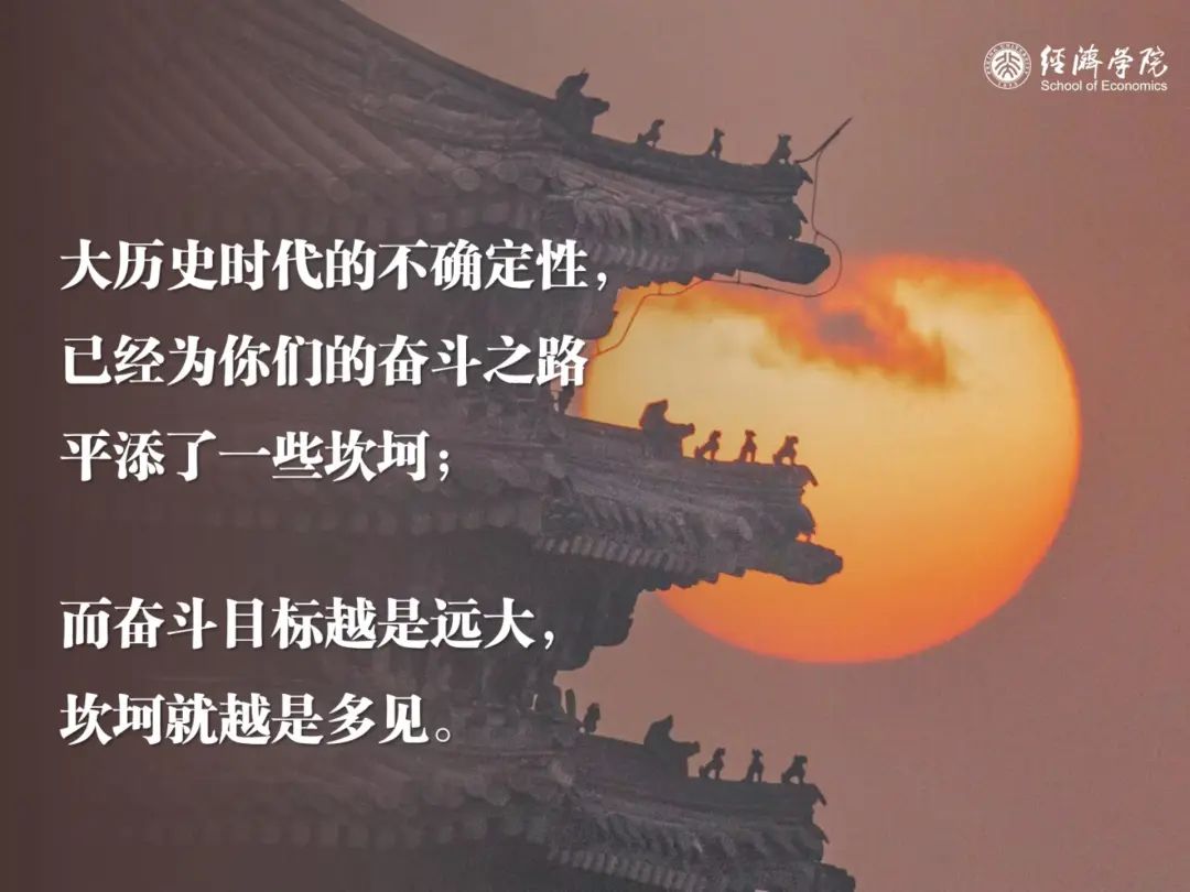 “桐花万里丹山路,雏凤清于老凤声。”我无比笃定地相信,在座的各位同学一定能够用实际行动,诠释士人的真精神、真本领、真情怀和真气度,做一个舒展的、大写的北大经院人。同学们,就让我们相会在更美好的明天!