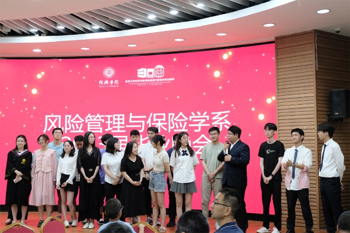随后,老师们逐一给毕业生同学送上殷殷嘱托。刘新立老师感谢家长们当年选择把如此优秀的孩子交到北大,交给北大风保系,她叮嘱同学们步入社会后,要一如既往地努力、勇敢,并希望大家保持初心,实现梦想。朱南军老师回顾了20年前第一次担任班主任的经历,而今年是他教学生涯中第二次担任班主任的班级毕业,他感触颇多,并希望大家走出校门后继续相互支持、互帮互助、共同进步。陈凯老师表示,大家从风保系毕业,一生都将是风保人,风保系是大家永远的港湾,欢迎同学们日后多回来看看。姚奕老师提到,对于今年毕业的同学们有着特殊的亲切感,虽然未来不可预见,既会有令人羡慕的幸运降临,也会遭遇始料未及的失败和考验。不论如何,她希望大家坚信一定会否极泰来。贾若老师谈到,同学们几年前羞涩腼腆的模样同今日毕业感言时的自信大方形成了鲜明对比,他很欣慰看到了大家的成长,并祝愿同学们云程发轫、万里可期。李丽萍老师真诚地感谢大家对风保系工作和活动的支持,并祝福大家前程似锦!