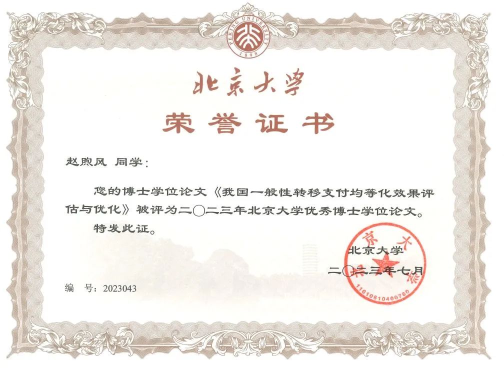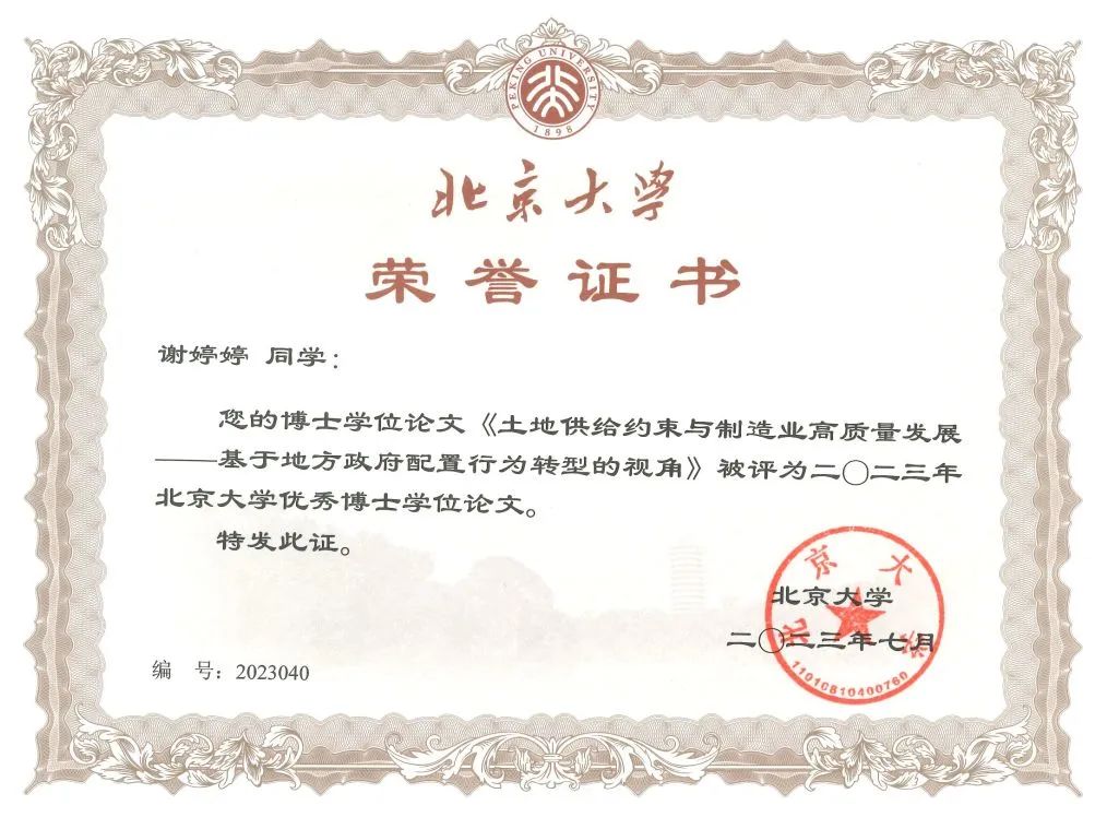 2023年7月5日,beat365中文官方网站公布2023年度beat365中文官方网站优秀博士学位论文获奖情况, 2018级赵煦风的学位论文《我国一般性转移支付均等化效果评估与优化》、2019级谢婷婷的学位论文《土地供给约束与制造业高质量发展——基于地方政府配置行为转型的视角》被评为beat365中文官方网站优秀博士学位论文。