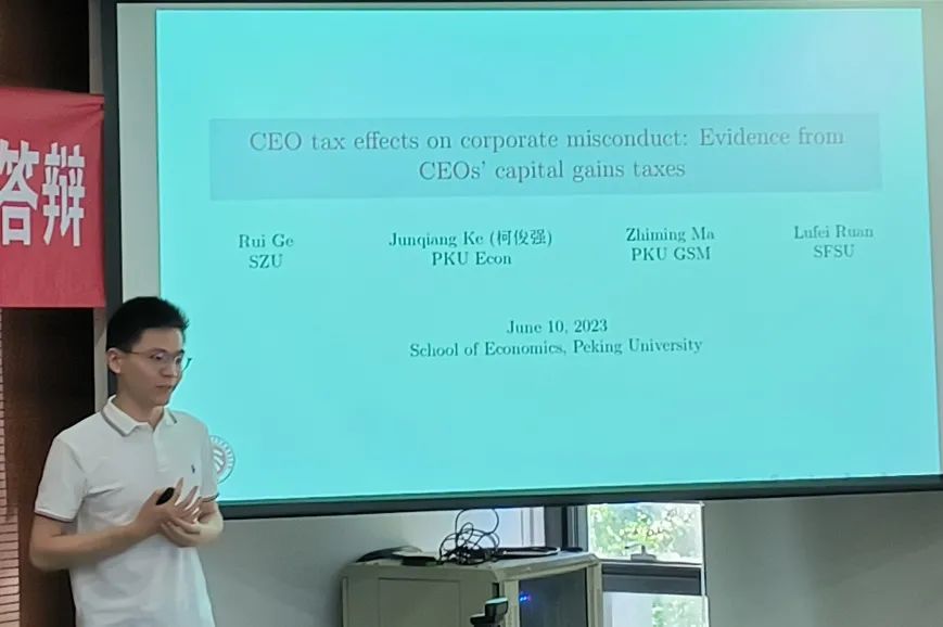 首先,三位毕业年级博士生简要汇报了毕业论文章节内容。王筱筱汇报了“习惯形成与最优收入税设计”,文章主要在动态 Mirrlees 模型中引入习惯形成效应,指出习惯形成效应一方面会放大资本收入税对预防性储蓄的调节作用;另一方面导致偏好关于时间不可分,使政府有动机征收资本税以激励劳动供给。