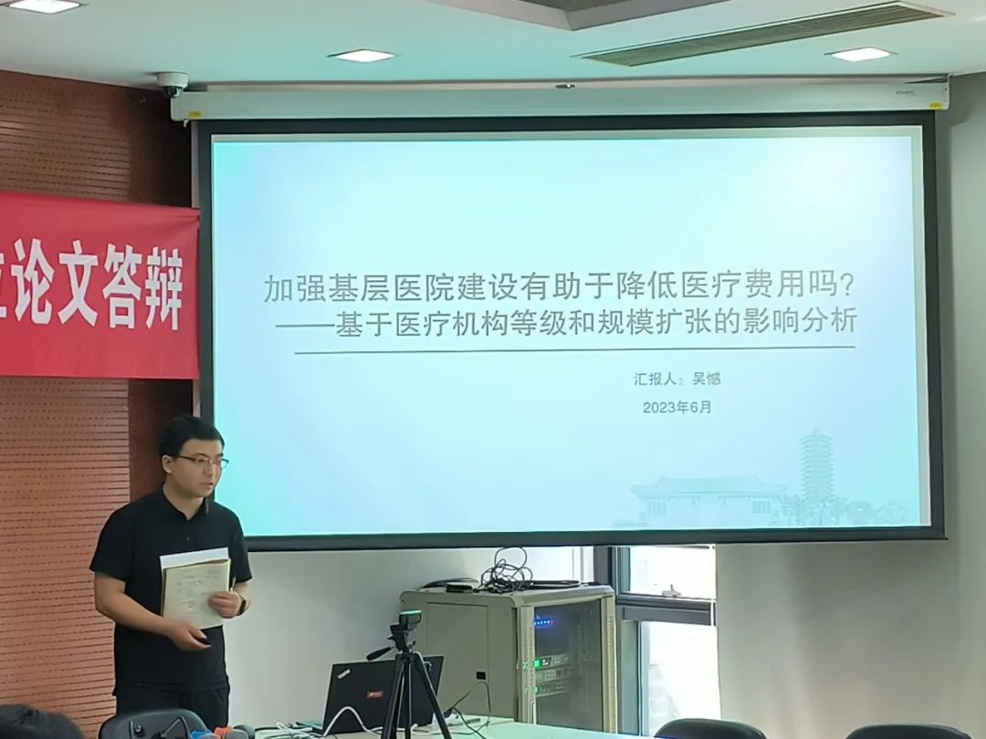 2017级博士生吴憾汇报了论文《医疗机构等级、规模与医疗费用》。本文通过分析不同层级医疗机构的医疗费用差异,以及基层医院改扩建前后患者就医费用和就诊人次的变化情况,对分级诊疗制度下加强基层医院建设的政策效果进行了评估。王志刚提出,可以对加强基层医院建设的效果进行更加全面的评估;杨龙见认为,针对重复就医的患者样本,可以加入个体固定效应从而进行更准确的评估;王耀璟建议,可以按基层医院改扩建的方式分类讨论,并筛选出代表性病种深入分析医疗费用的变化情况。