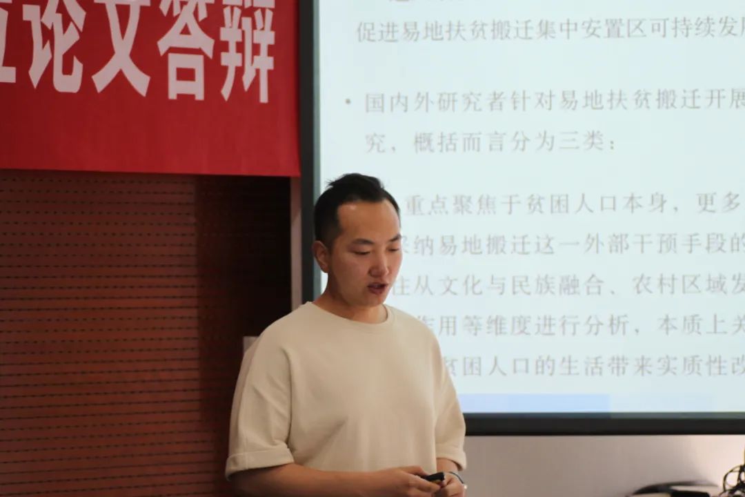 2021级博士生贾泽诚汇报了论文《后扶贫时代易地扶贫搬迁集中安置区转型发展的内在逻辑与实现路径》。文章构建了由易地扶贫搬迁主要相关方组成的分析框架。研究发现,移民群体的脱贫意愿是安置区发展与转型的内生动力;中央政府的扶持政策与乡村振兴形成转型发展的宏观引领;基层政府有效落实政策与开展创新探索是其重要推动力;多元化市场主体有助于安置区形成具有特色产业基础,并推动就业和社会环境改善。评审老师们建议研究过程中要注意扶贫政策在不同的时间点和地区产生的不同影响和脱贫背后产生的成本,并对后续研究给出了新的视角和详实的建议。