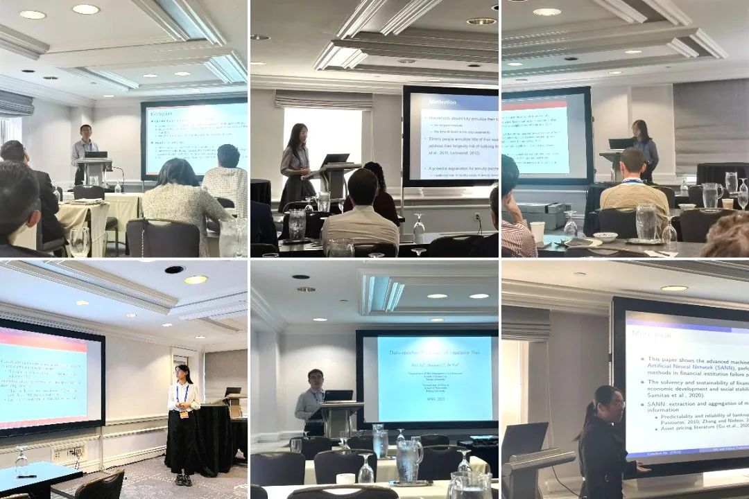 在本次会议中,贾若报告了《极端高温和健康保险需求》(Extreme Heat and Health Insurance Demand, 合作者:秦雪征、陈嫣然);艾美彤报告了《健康成本风险、非正式保险和年金需求》(Health Cost Risk, Informal Insurance, and Annuitization Decisions, 合作者:高明、贾若);张畅报告了《我为你,你为我:动机性信念与配偶间保险决策》(I for you, you for me: Motivated Beliefs and Insurance Decisions between Spouses,合作者:贾若、郑家昆);张浩田报告了《社会保险扩张中的拖延参保:来自中国新型农村社会养老保险计划的证据》(Procrastinated Participation in Social Insurance Expansion: Evidence from China’s New Rural Pension Scheme,合作者:郑伟、祝伟);尹晔报告了《丰富数据条件下的保险风险预测》(Data-enriched Prediction of Insurance Risk,合作者:贾若、李少然);贺灿春报告了《机器学习与金融机构破产预测》(Machine Learning and Failure Prediction of Financial Institutions,合作者:黄德金、贾若、王熙)。此外,风险管理与保险学系多名师生还担任了学术分论坛的点评人。