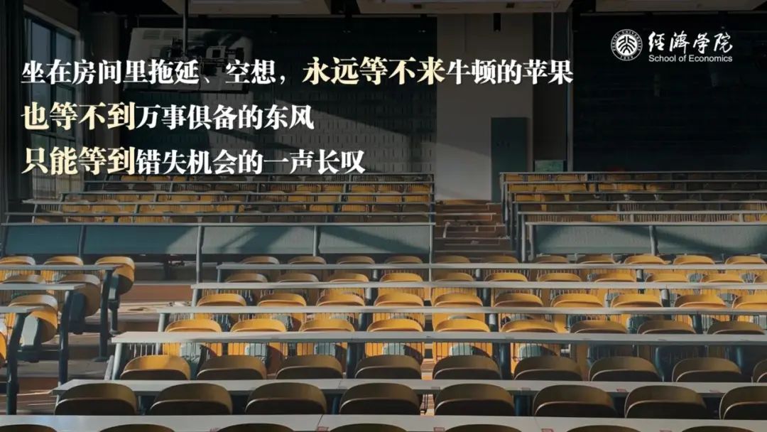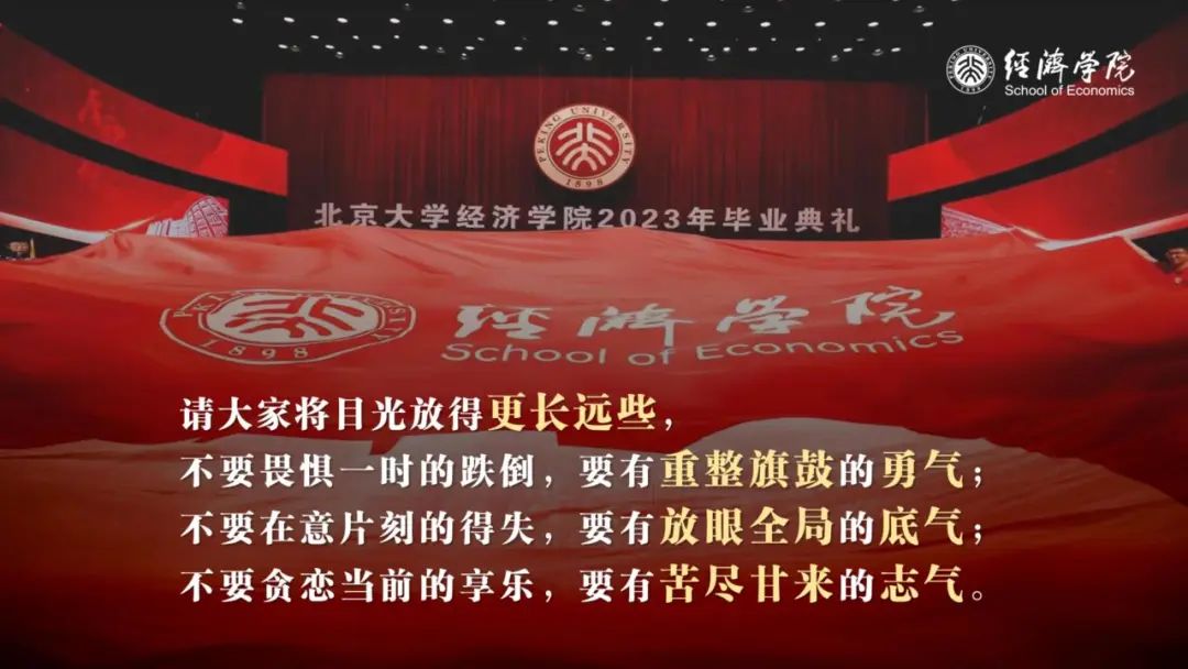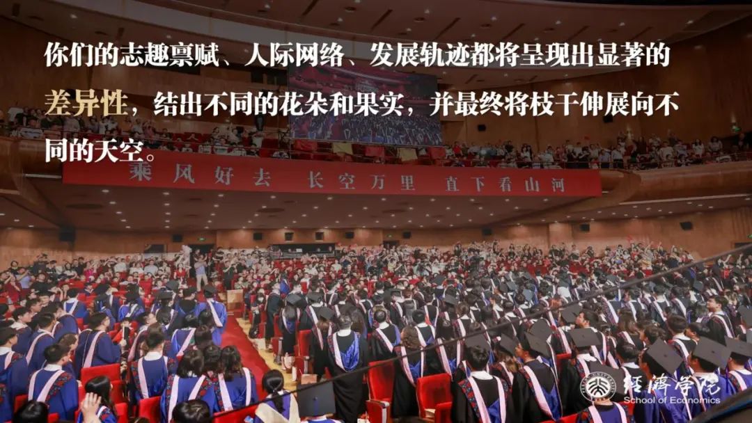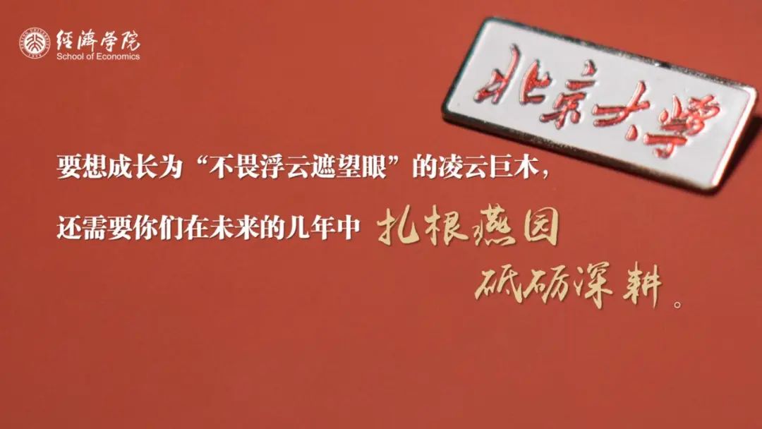 这个过程说起来轻而易举、水到渠成,但个中酸甜苦辣,却需要你们每个人去亲身经历、自主选择。“杂交水稻之父”袁隆平先生曾说:“人就像一粒种子,要做一粒好种子。”能够加入北大经院的大家庭,你们每个人已经释放出了足够的好种子的信号;但要想成长为“不畏浮云遮望眼”的凌云巨木,还需要你们在未来的几年中扎根燕园、砥砺深耕。